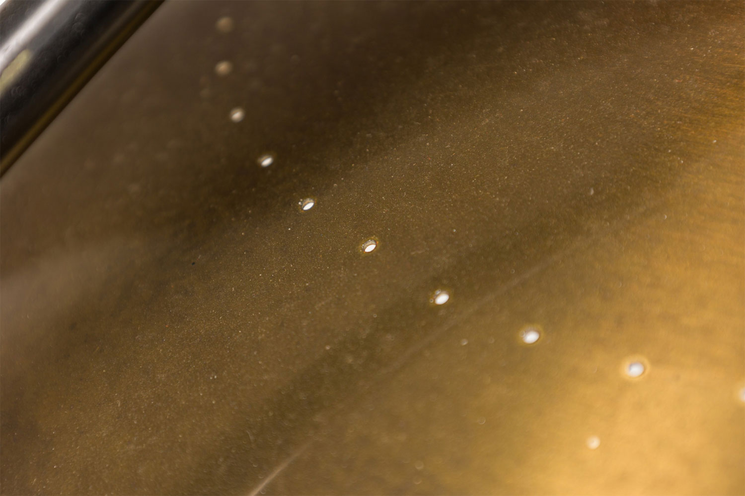 Style: Mid-Century Materials & Techniques: Brass, enamel, metal Category: Lighting Good; Wear consistent with age and use