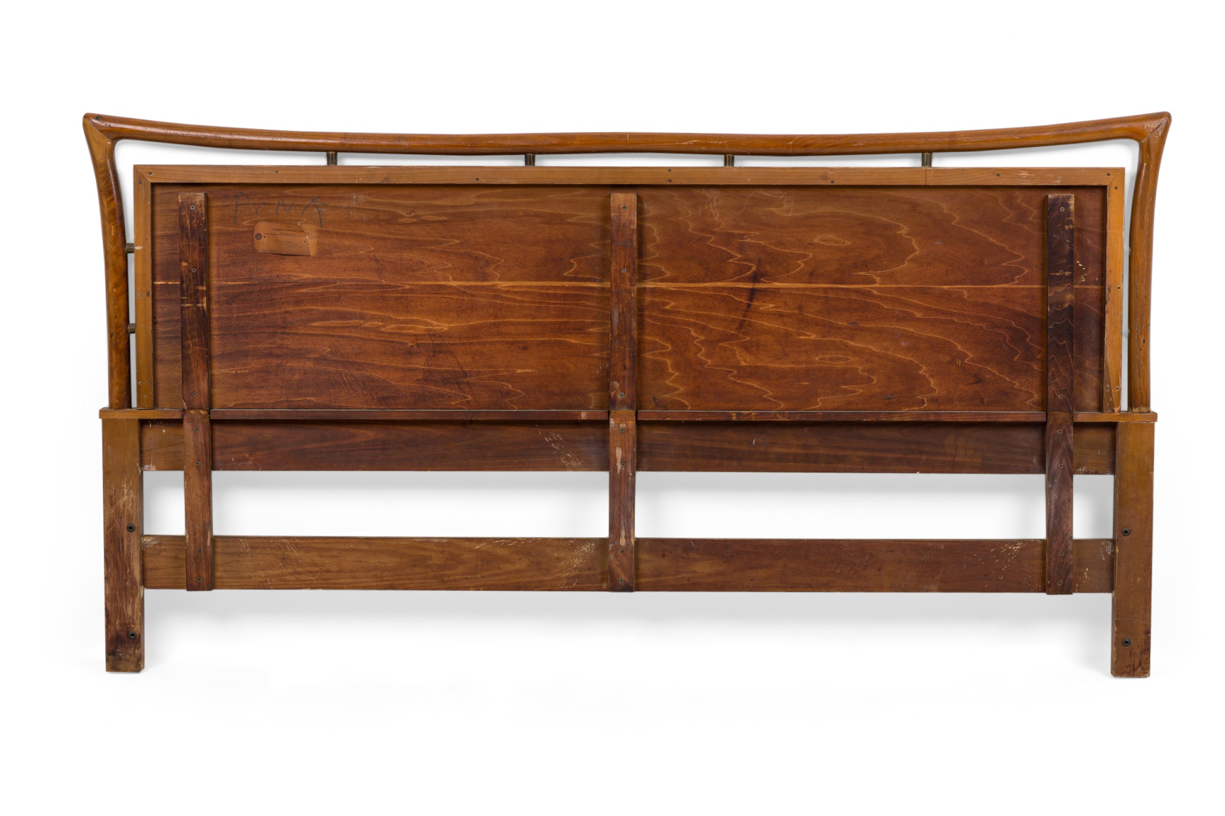 Danish Mid-Century walnut king size headboard with a solid horizontal panel under a shaped open top (PIET HEIN).