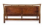 Danish Mid-Century walnut king size headboard with a solid horizontal panel under a shaped open top (PIET HEIN)