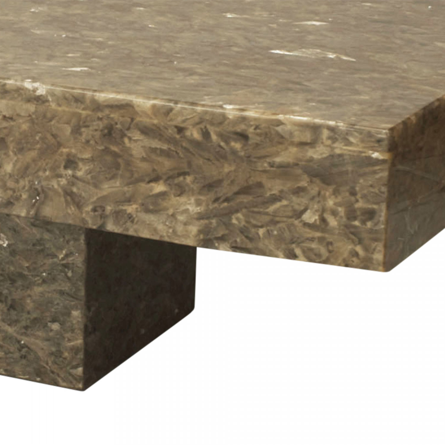 Italian Mid-Century Modern (1960s) rectangular beige mica and resin coffee table resting on a solid base.