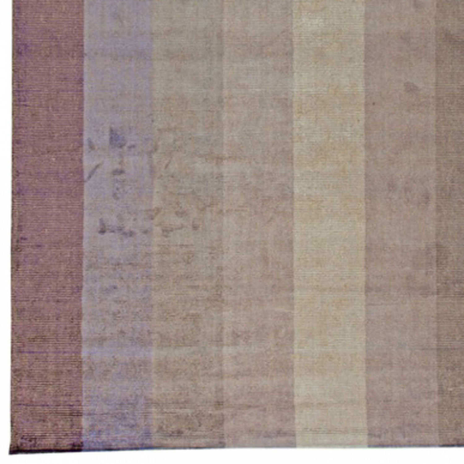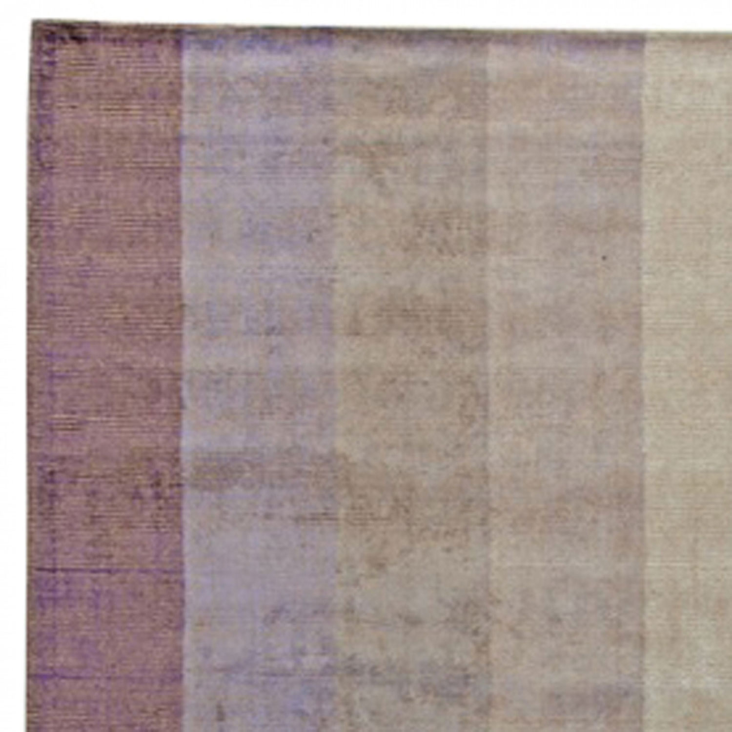 Contemporary area rug with a striped purple, beige, and brown pattern (16.75 x 11').