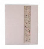 Contemporary abstract resin sculpture comprised of a rectangular white resin slab with a translucent off-center rectangular window in which various colorful pills are suspended. (RAY GEARY).
