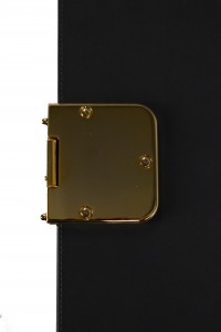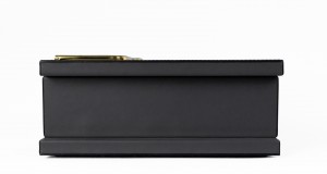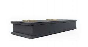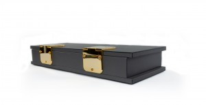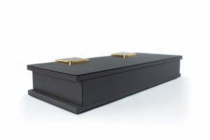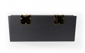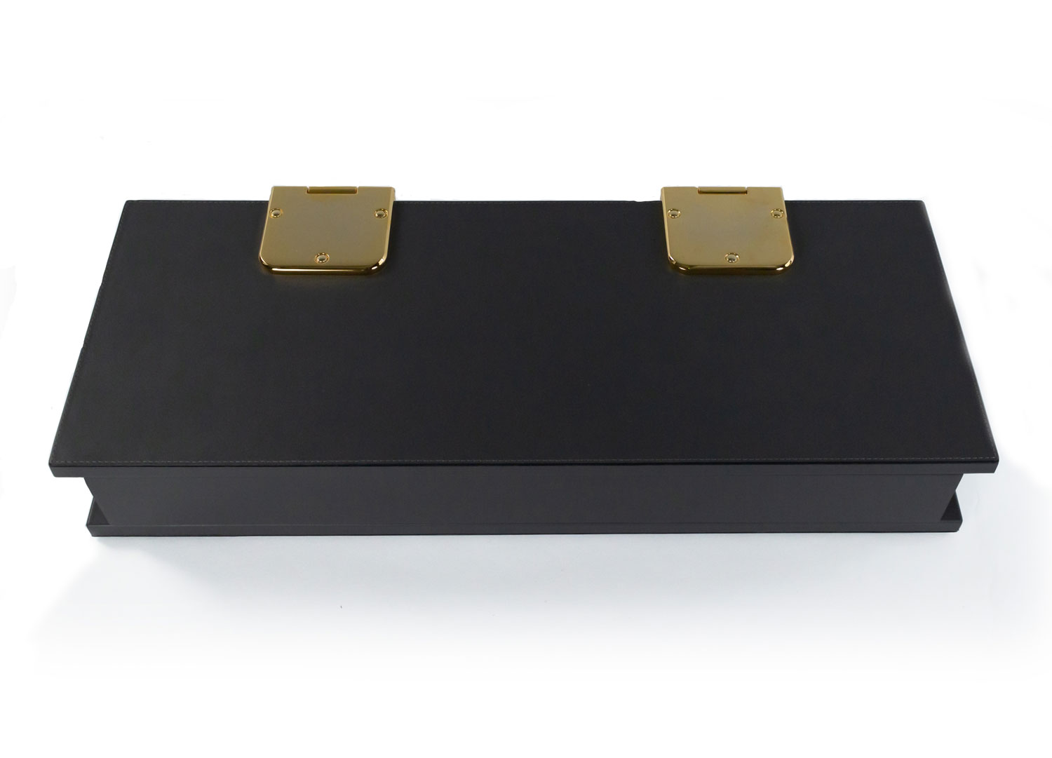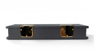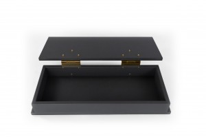 Contemporary rectangular dark gray leather box with two large brass hinges (Made in Italy) (Related Items: MOD020)