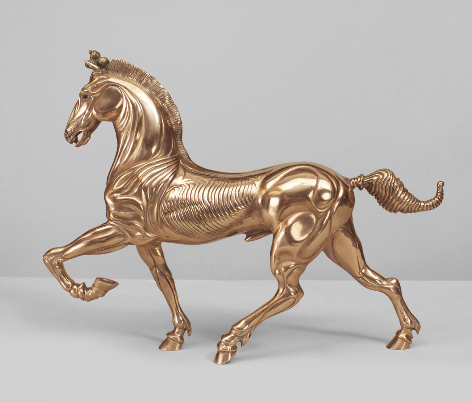 Italian Renaissance style silver plate bronze figure of horse walking (from a series of 1,000 titled: "Cavalli di San Marco II", signed by LUDOVICO De LUIGI, 1979).