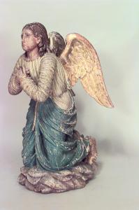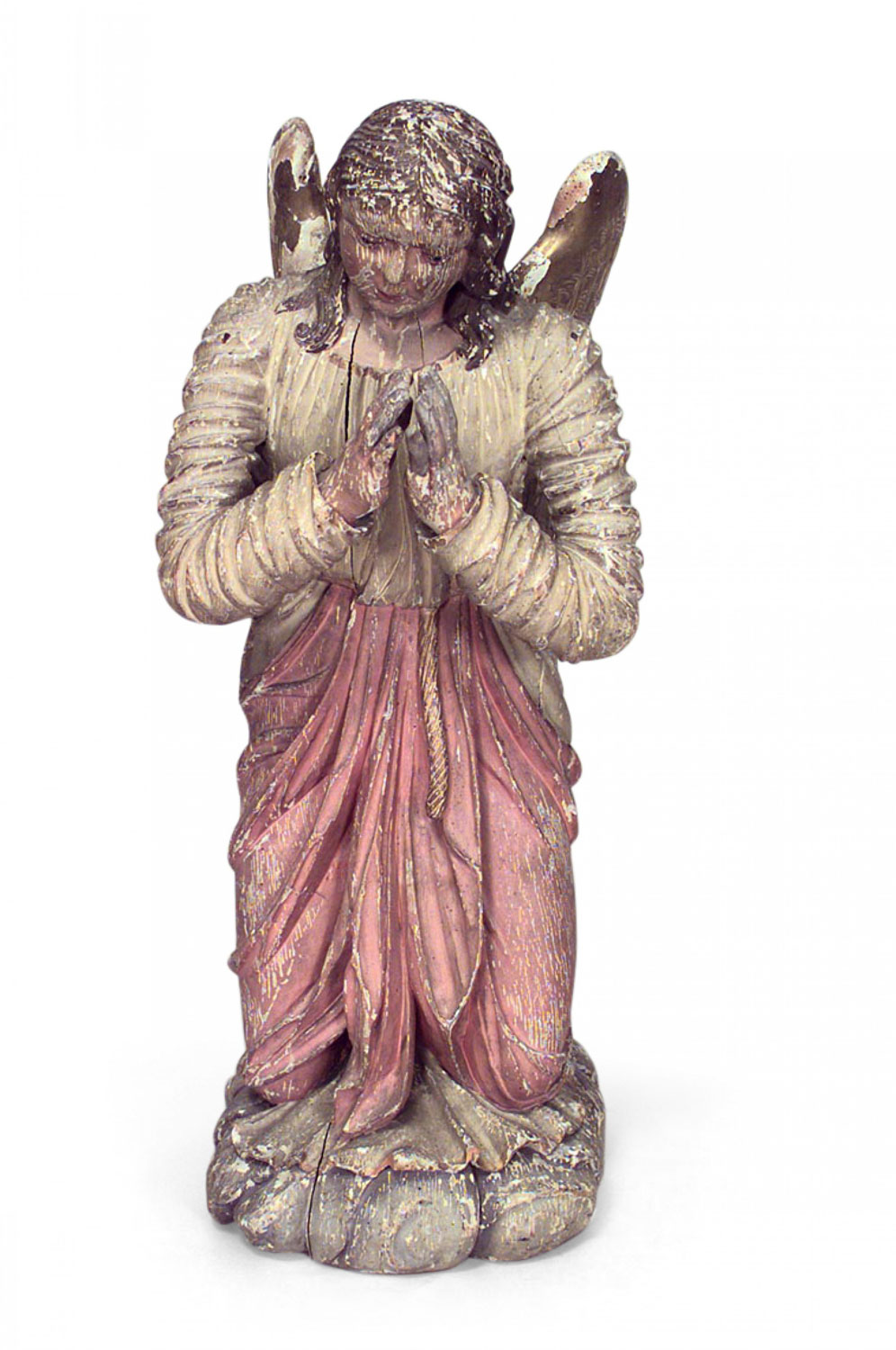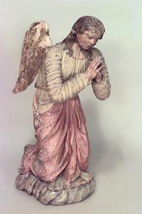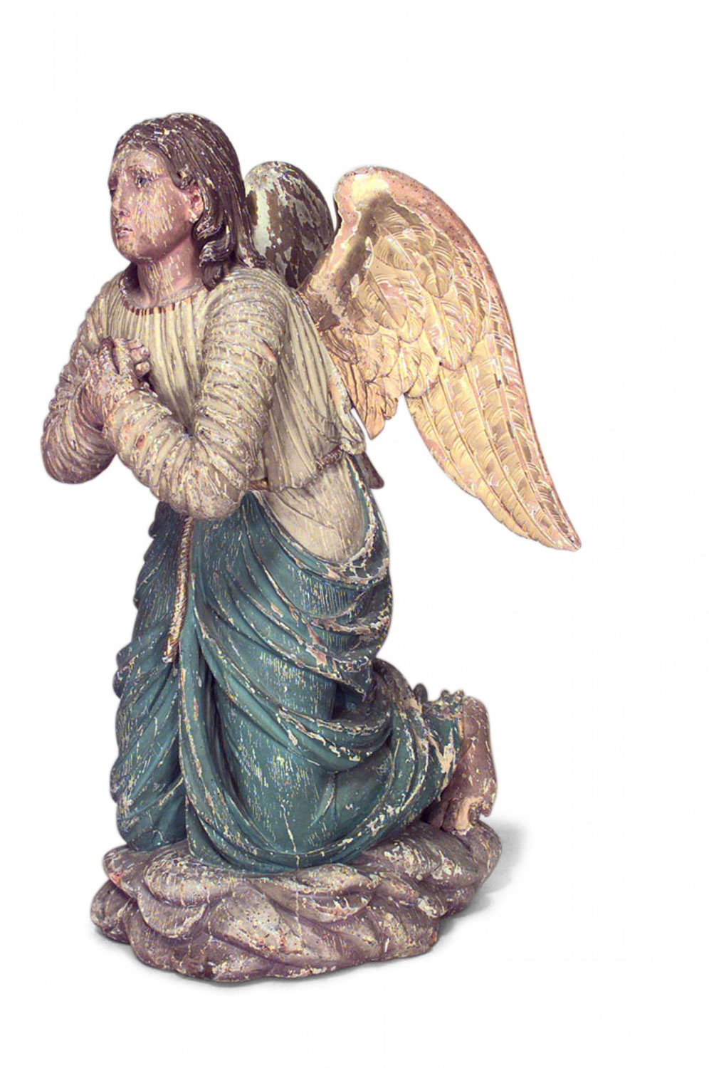 PAIR of Italian Renaissance style (19th Cent) polychromed life size kneeling angels with gilt wings (similar matching pair without wings #034018).