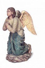 PAIR of Italian Renaissance style (19th Cent) polychromed life size kneeling angels with gilt wings (similar matching pair without wings #034018)