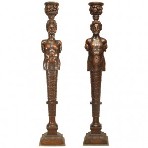 PAIR of Italian Renaissance style (late19th Century) walnut life-size carved figures of the Devil and his wife standing on pedestal bases. (attributed to Francesco Toso) (PRICED AS PAIR)