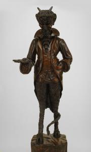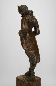 PAIR of Italian Renaissance style (late19th Century) walnut life-size carved figures of the Devil and his wife standing on pedestal bases. (attributed to Francesco Toso) (PRICED AS PAIR).