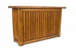 Set of American Old Hickory style (1950s) cedar bar furniture including a 2 section back bar cabinet, 4 bar stools, & bar with a fluted front design (by RITTENHOUSE).