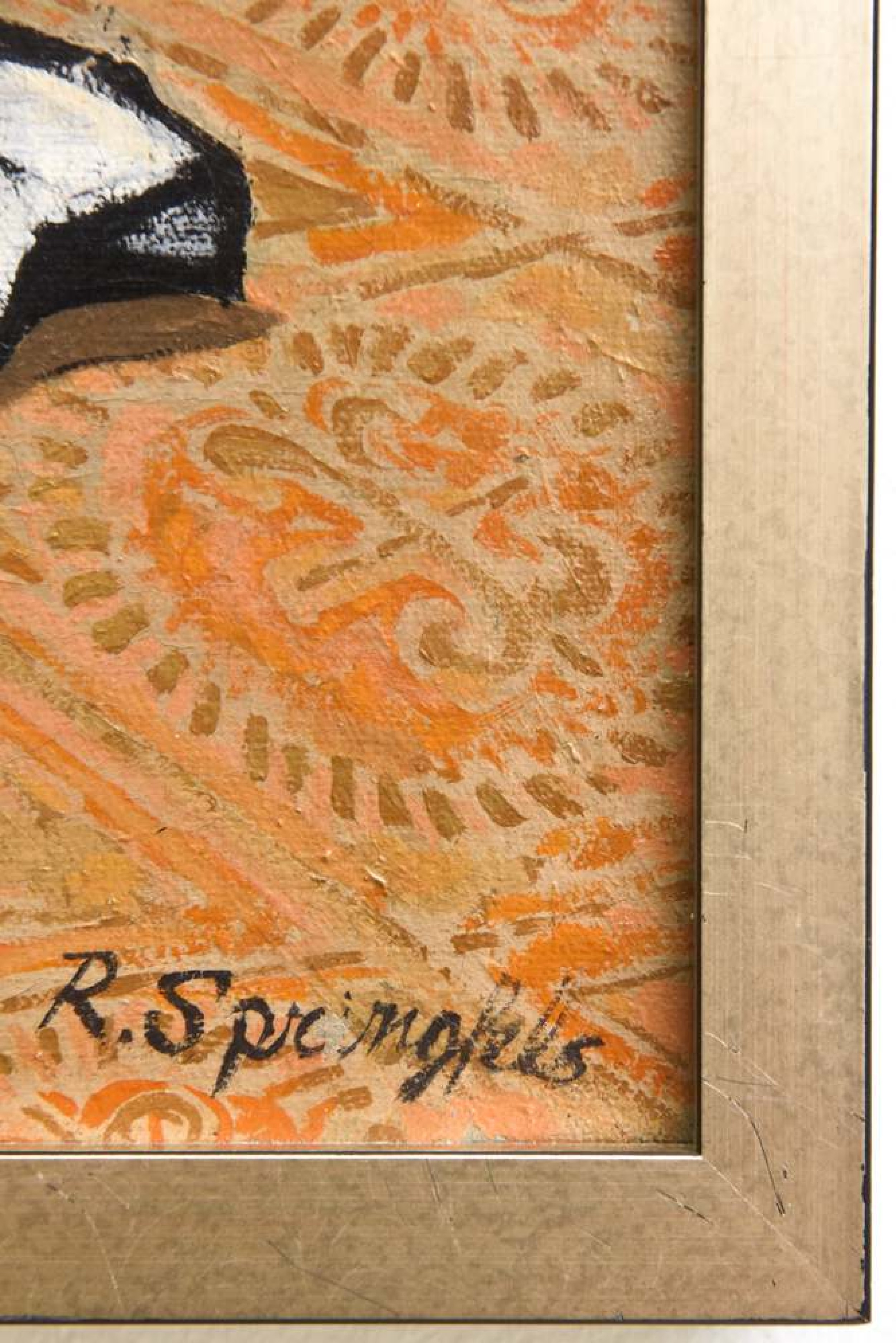 Robert Springfels American Mid-Century Surrealist Oil on Canvas, Titled "Still Life of Orange and Pl