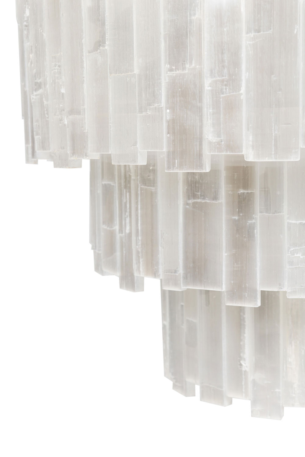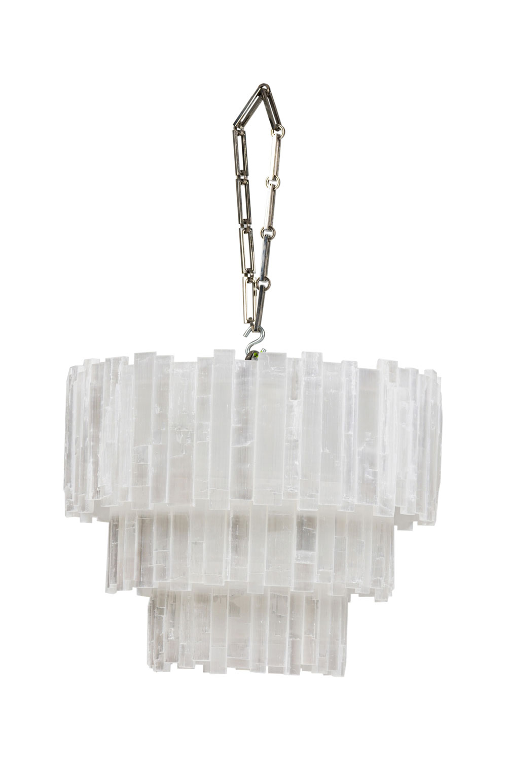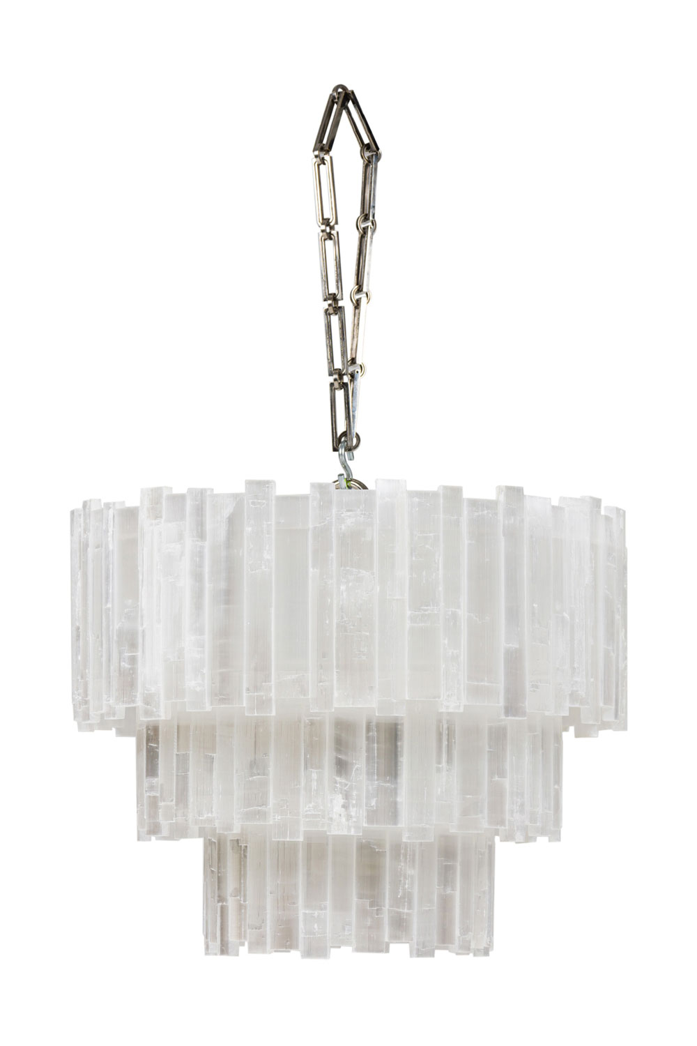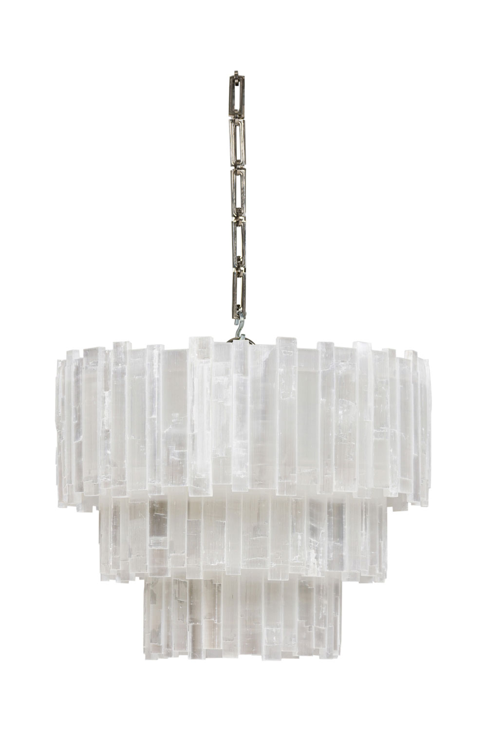 American Contemporary circular 3-tier selenite chandelier with a rectangular brick form design (RON DIER) (similar to NWL6030)