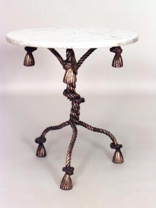 Style: Mid-Century Materials & Techniques: Gilt / giltwood, marble, metal, tassel Category: Tables