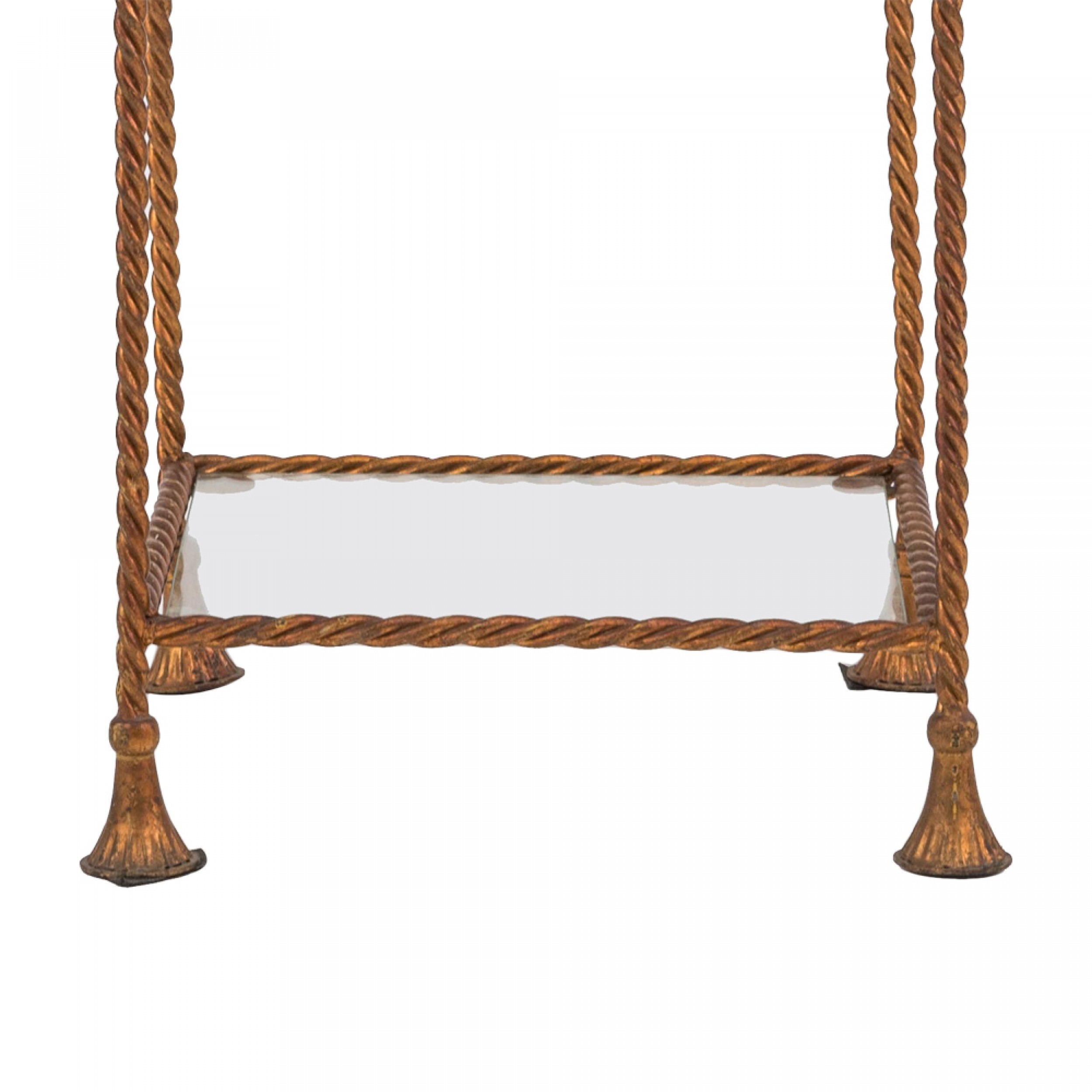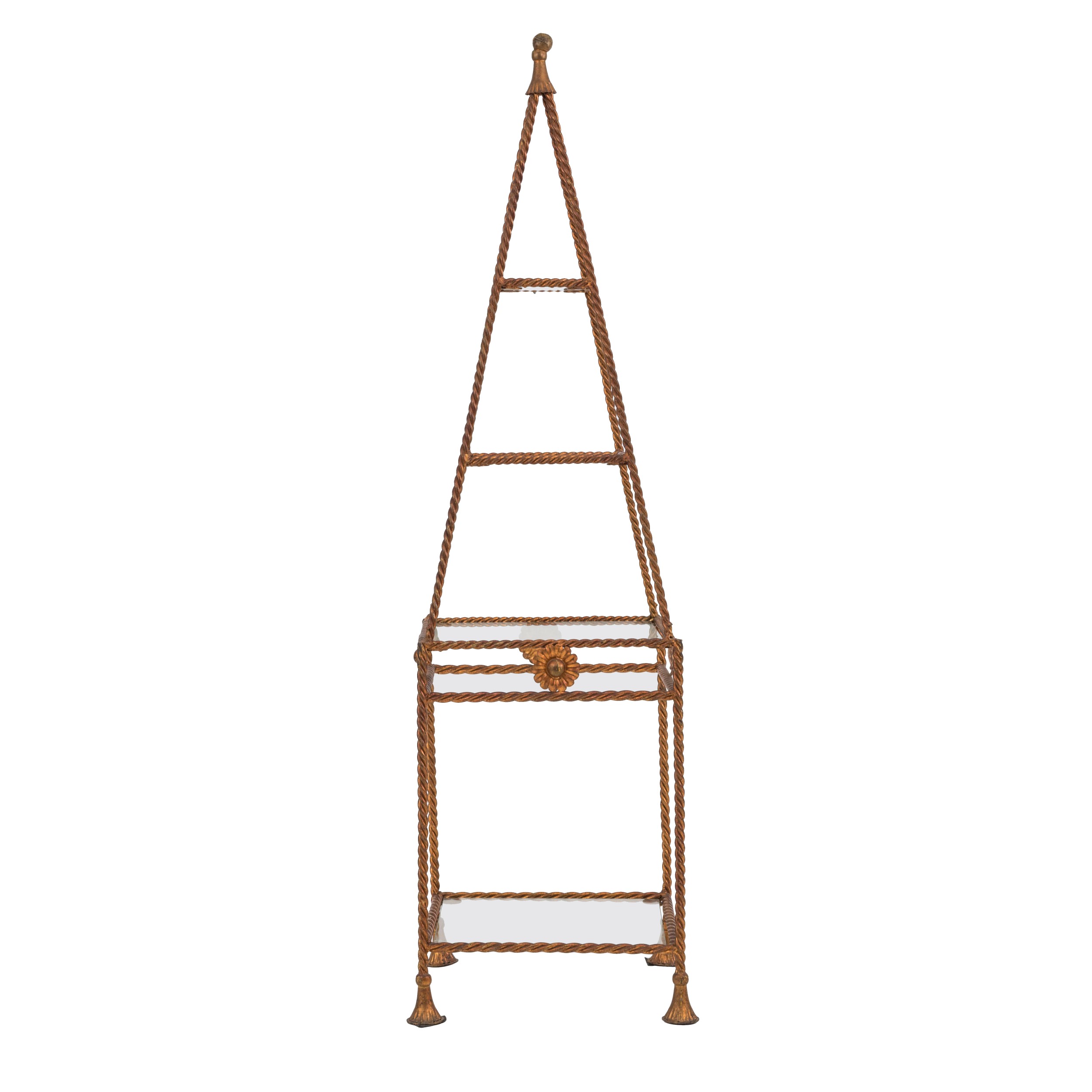 Rope and tassel design (20th Century) gilt metal obelisk shaped 4 shelf etagere