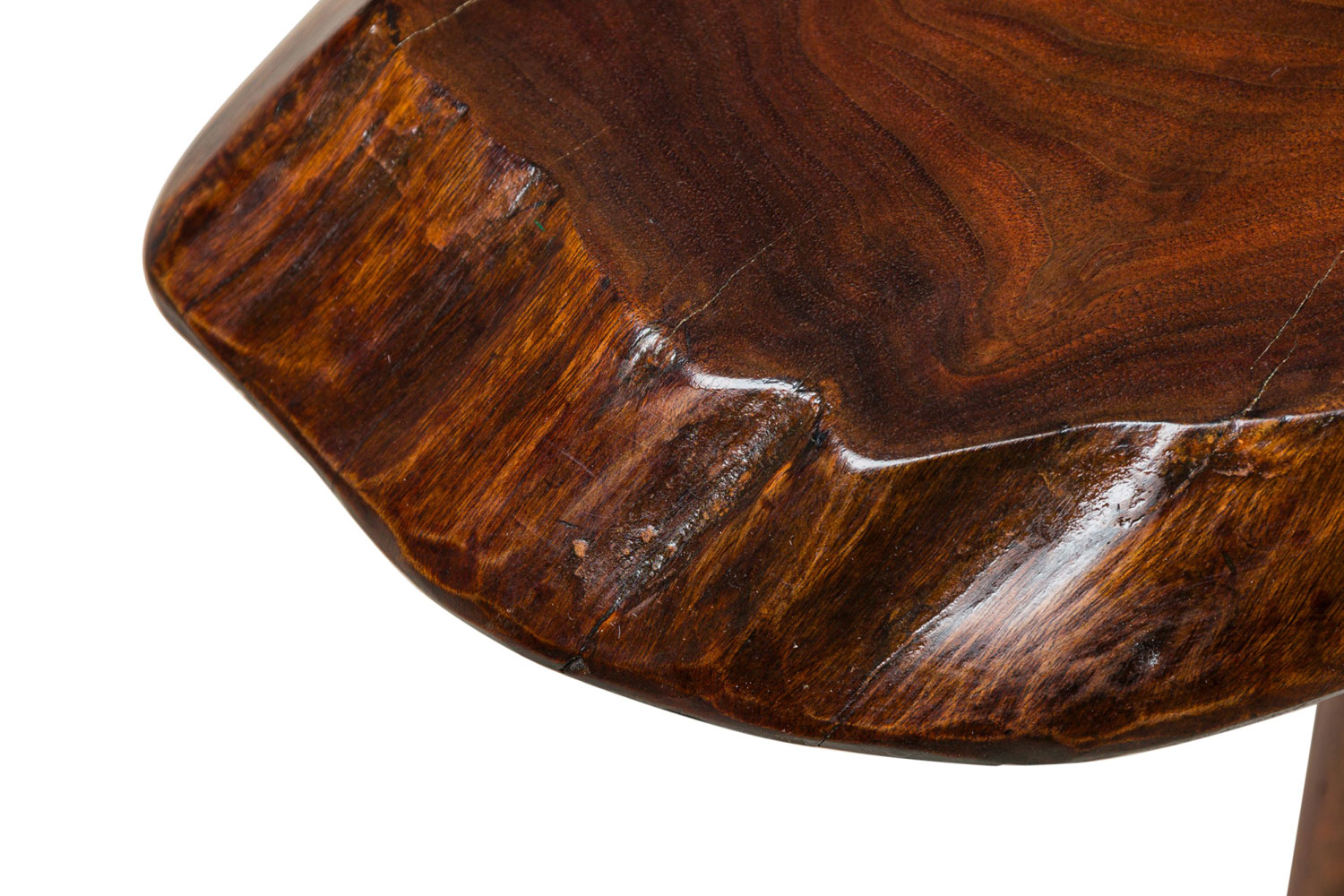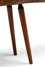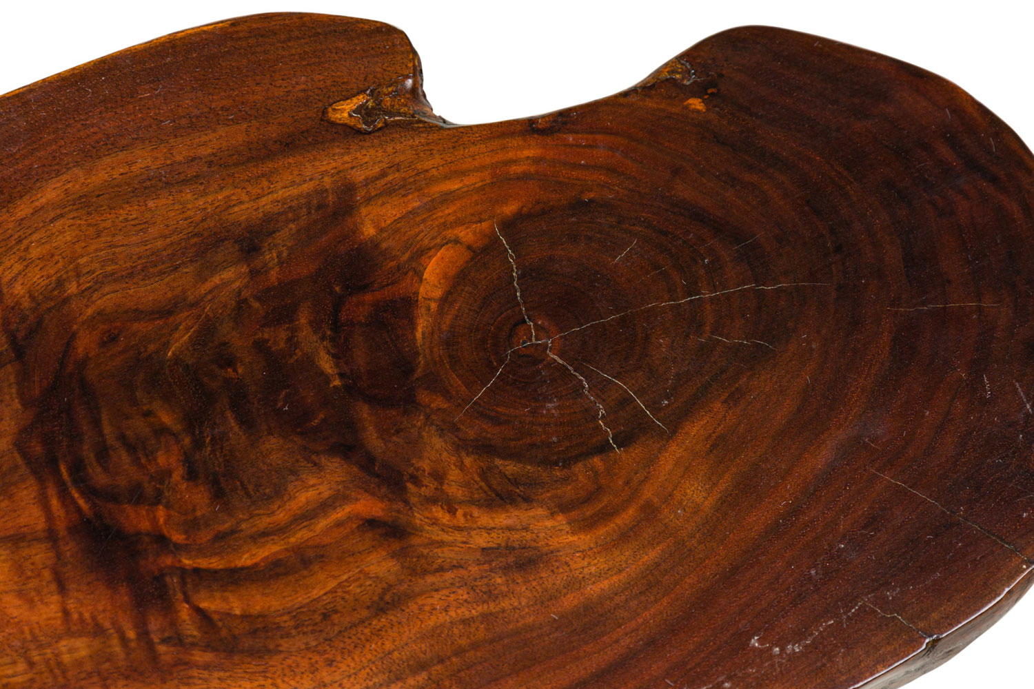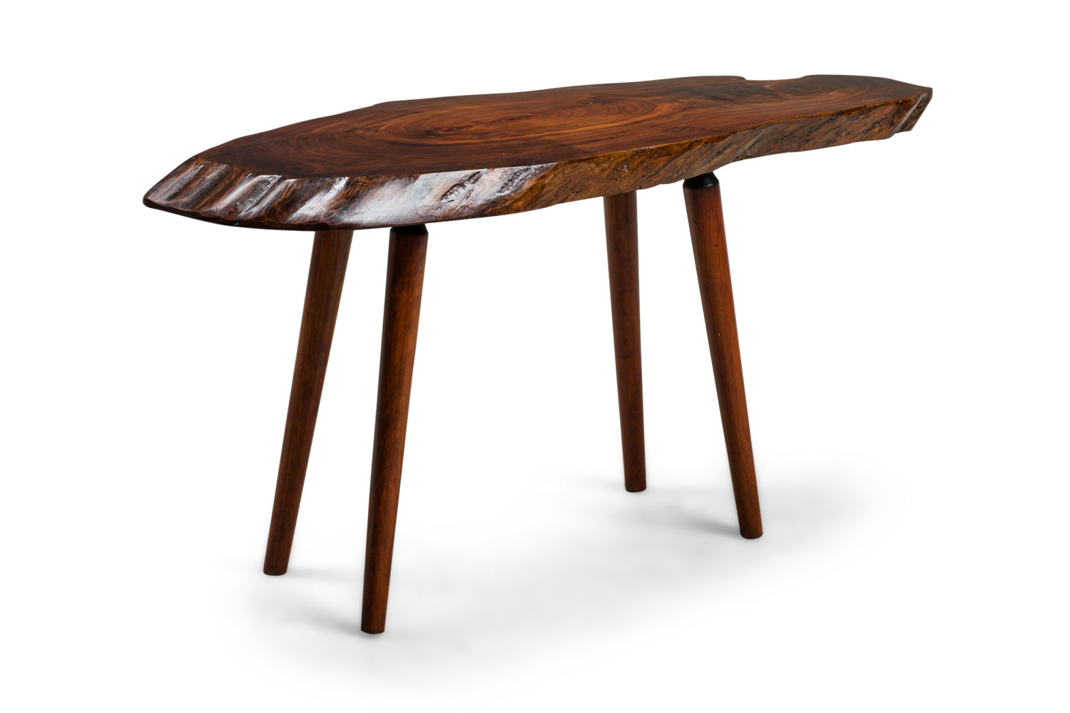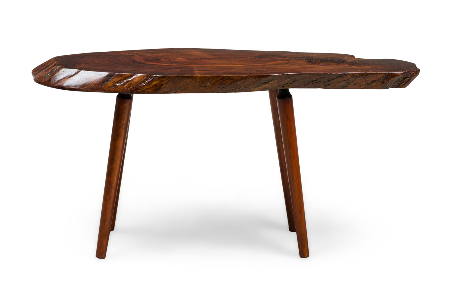American Mid-Century Rustic style Low Cocktail /coffee Table having a freeform edge top and resting on 4 round legs (Studio Craft-ROY SHELDON)