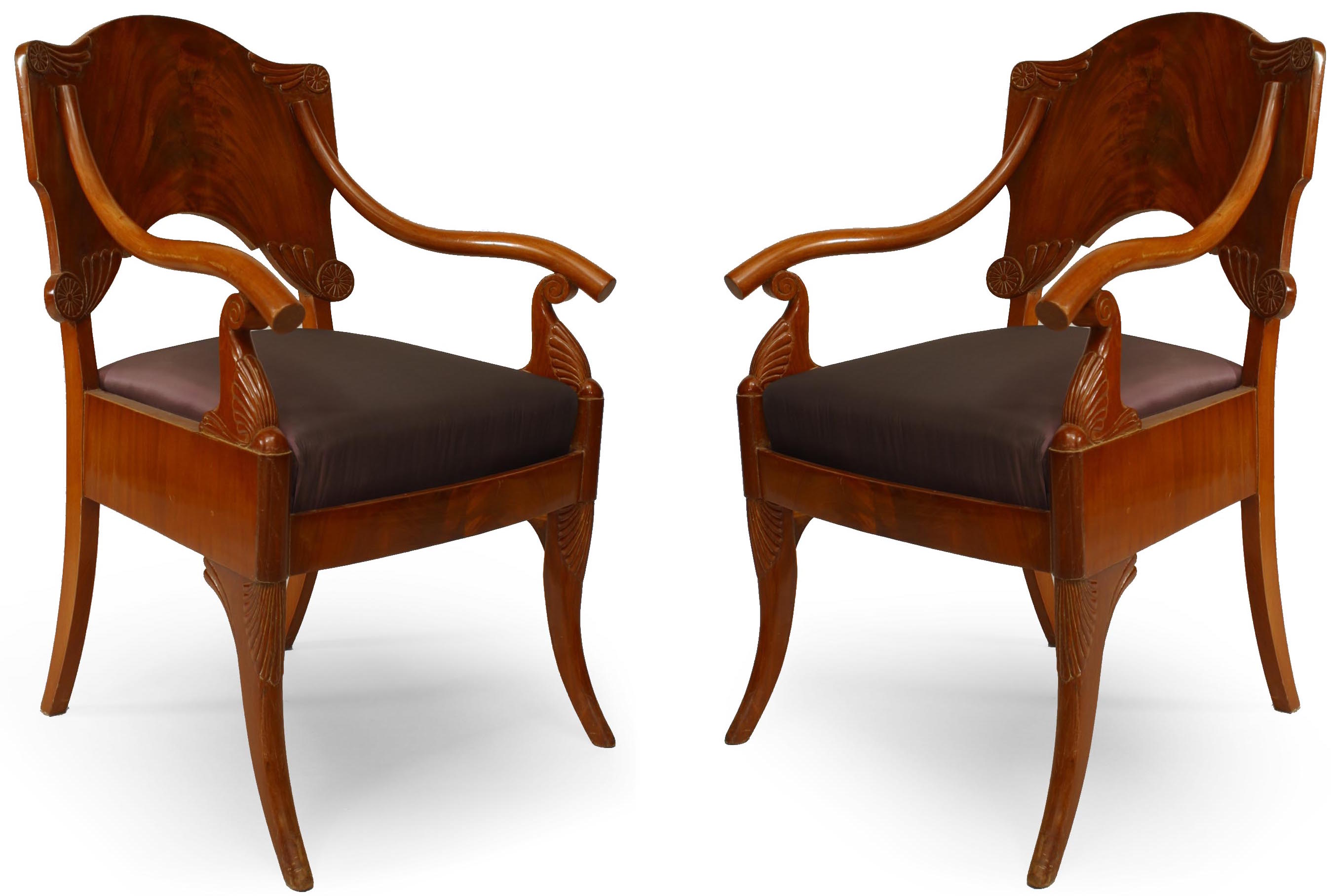Pair of Russian Mahogany Foliate Armchairs
