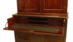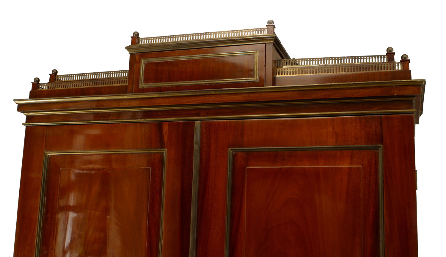 Style: Russian Materials & Techniques: Brass, mahogany, pediment Category: Cabinets & Case Goods, Office/Library