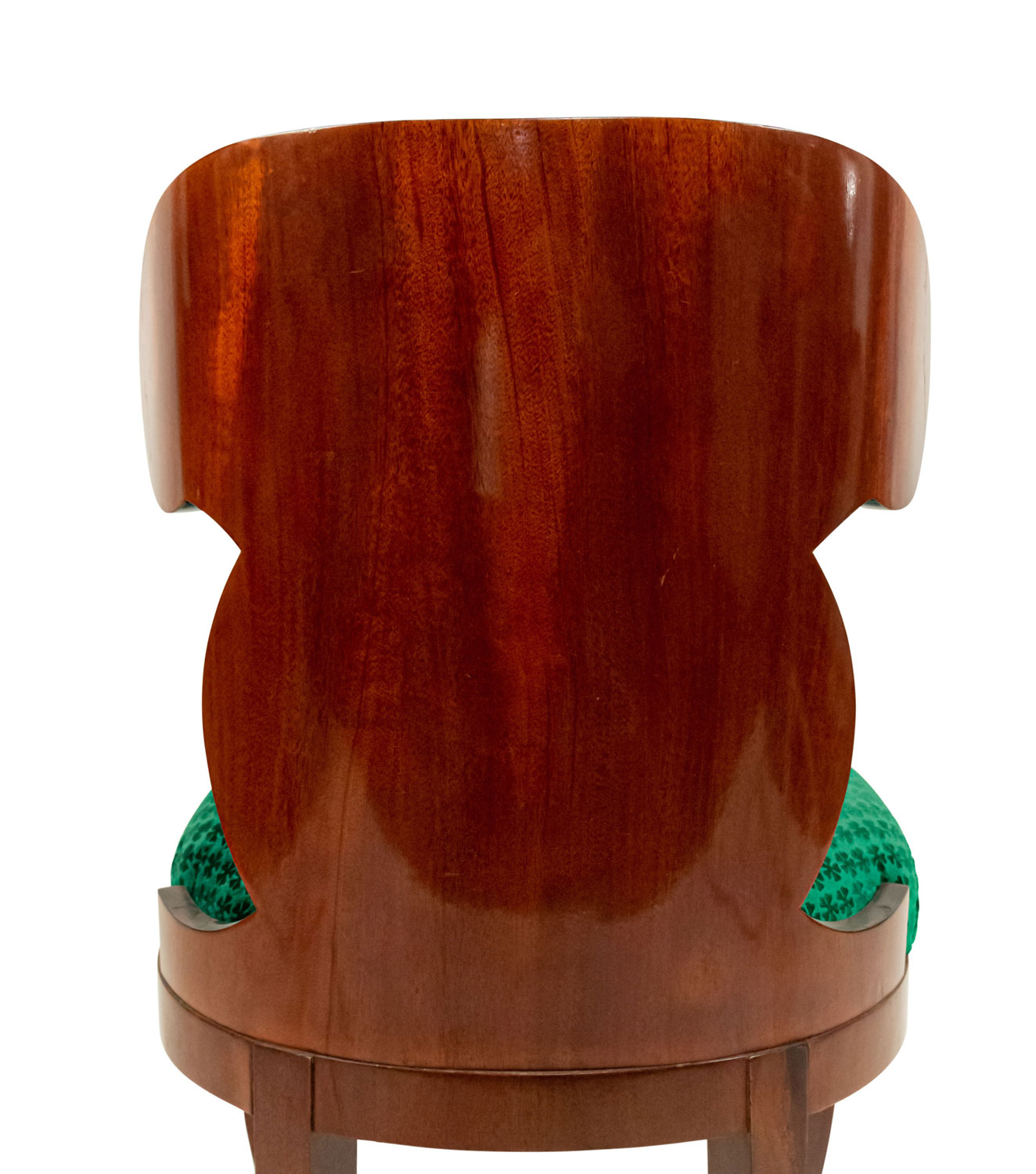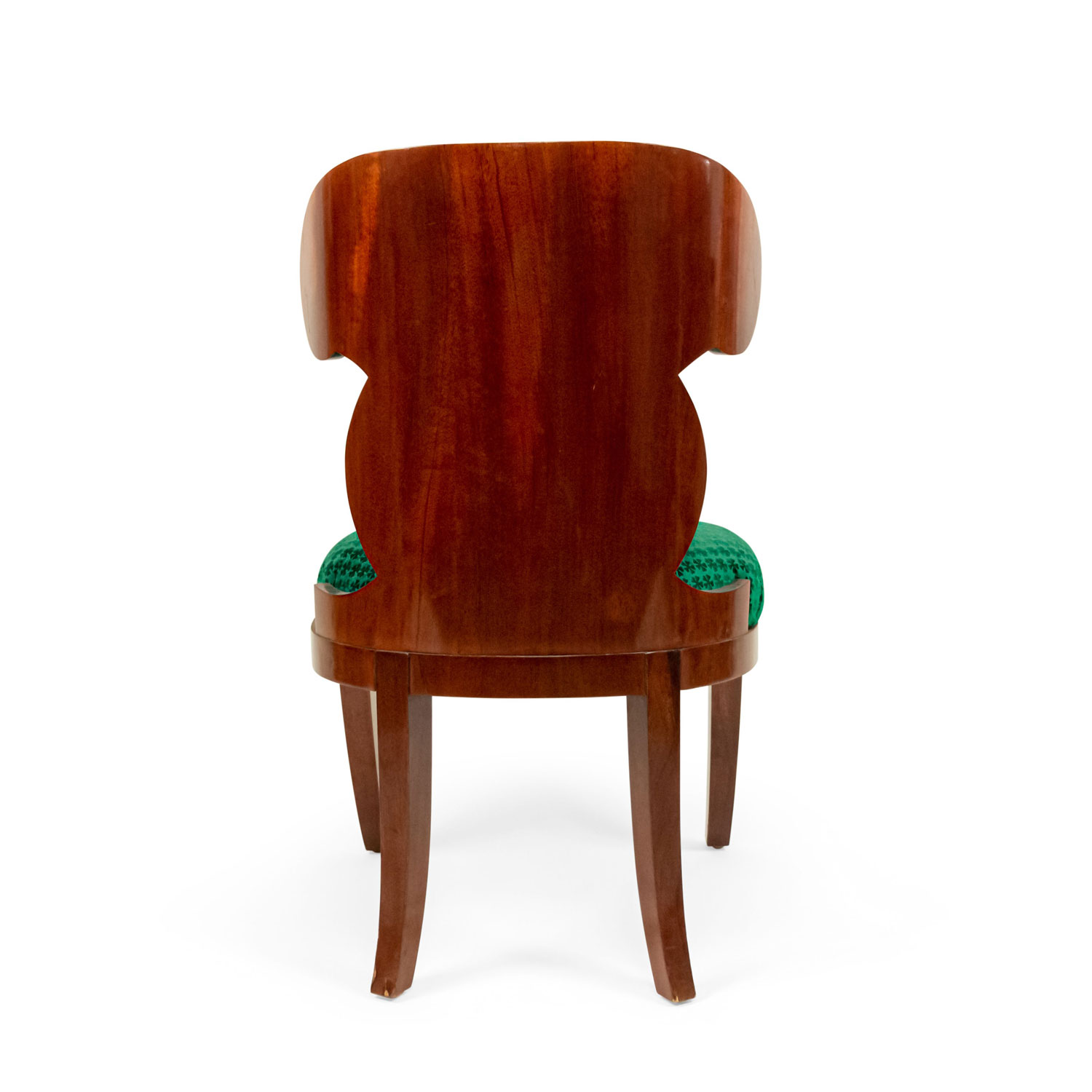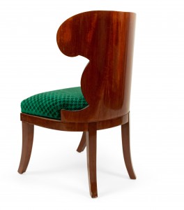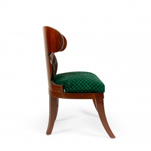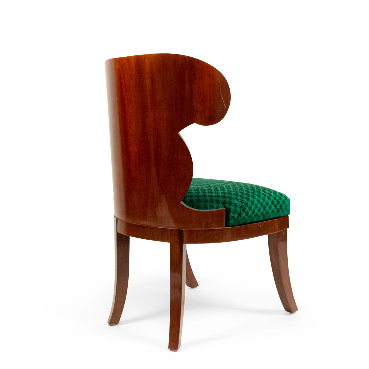 Russian Neoclassic style mahogany "klismos" side chair with incurved back above a green velvet upholstered seat. (20th Cent).
