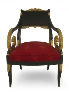 Style: Russian Materials & Techniques: Upholstered, wood, giltwood, silk, painted Category: Seating Condition: Shows wear and tear.