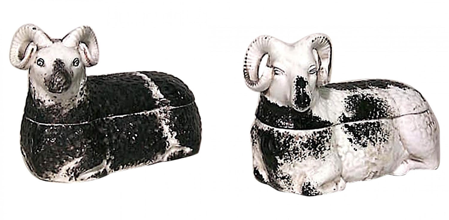 Russian Porcelain Ram-Shaped Boxes