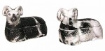 3 Russian (Late 19th/20th Century) covered glazed porcelain boxes in the form of reclining black and white ram (Kusnetzoff Factory)(PRICED EACH)