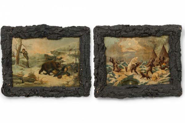 Pair of Rustic Adirondack Hunt Scene Pictures