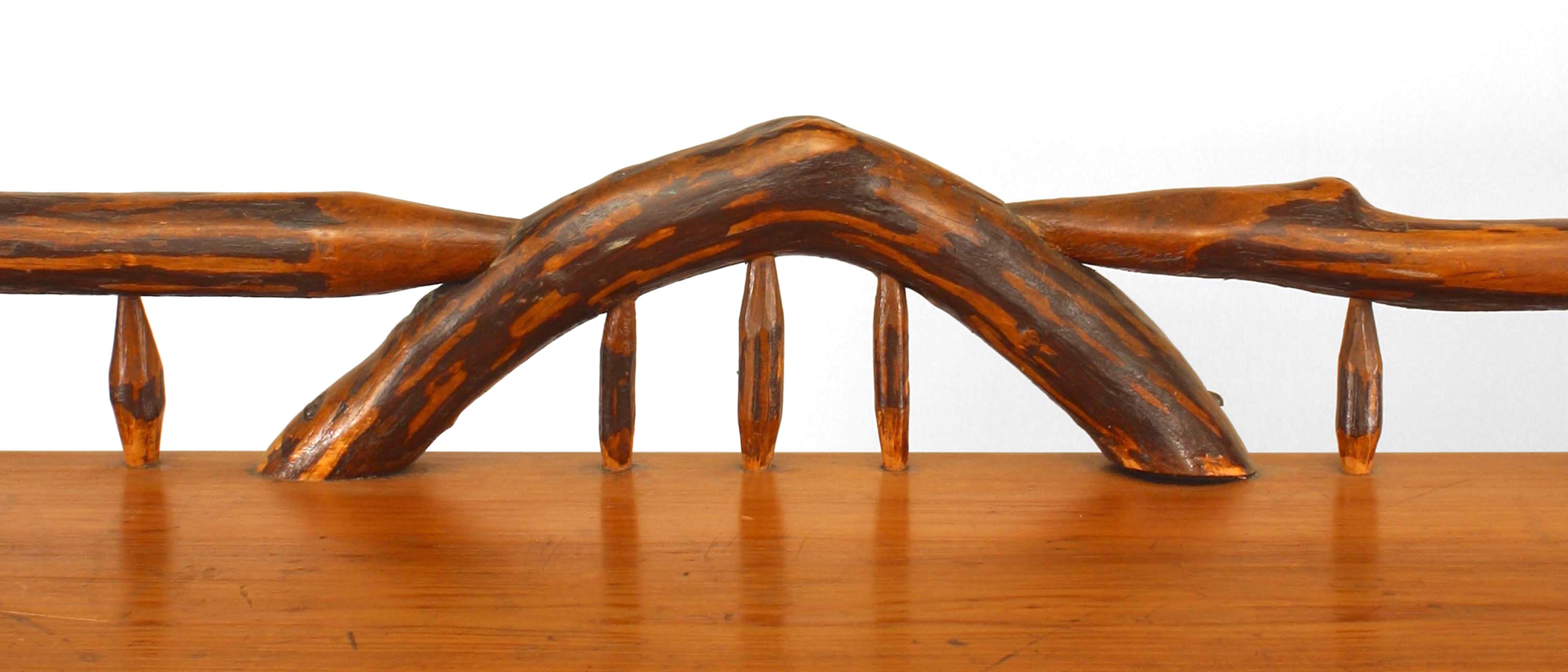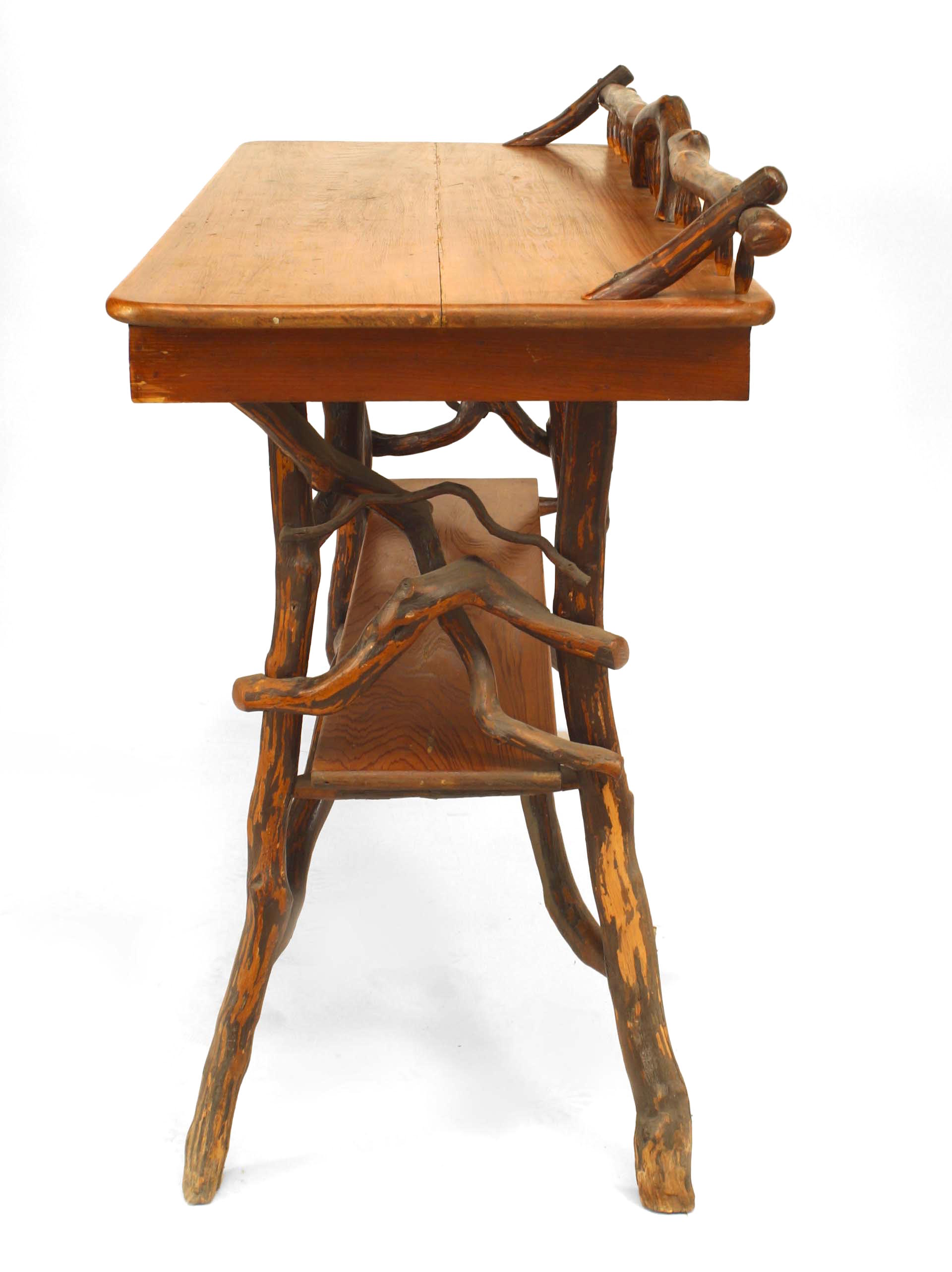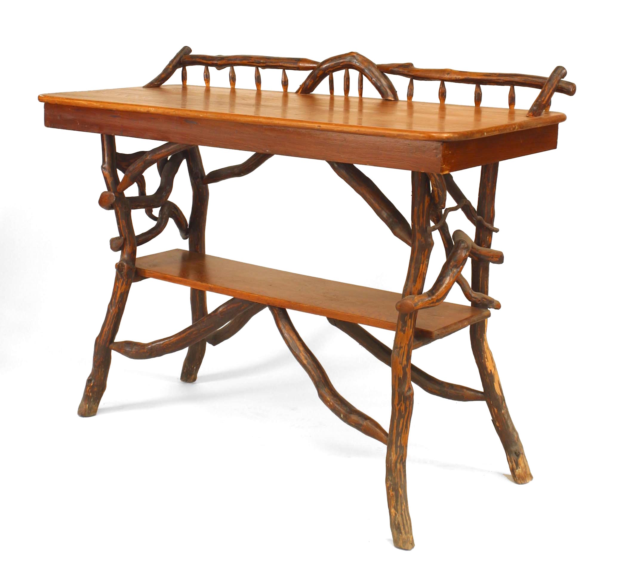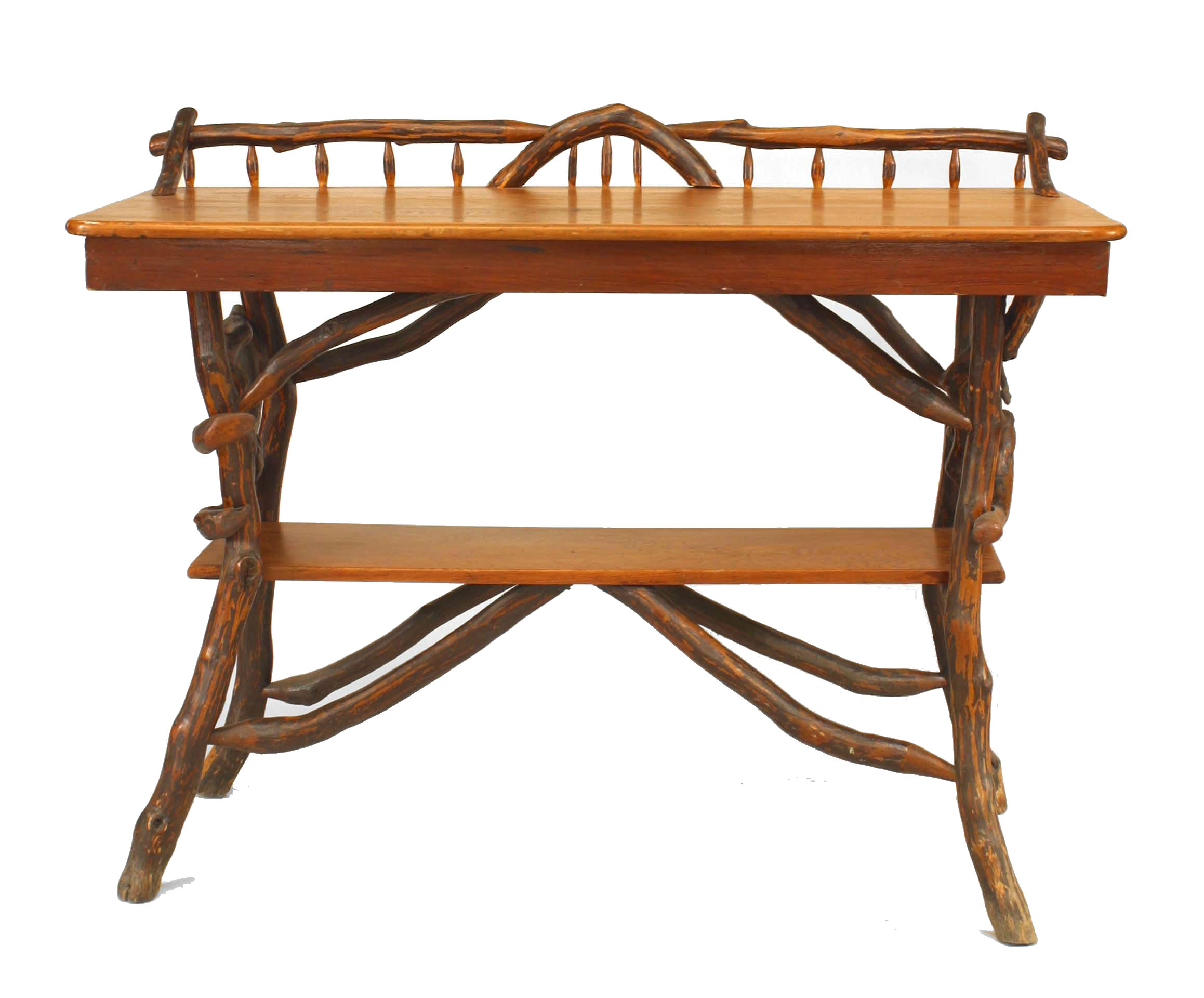 American Rustic Adirondack serving table of twig & root construction with gallery above a rectangular pine top & under-tier. (Attributed to BEN DAVIS, c.1920, North Carolina).