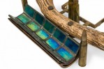 Style: Rustic Materials & Techniques: Brass, crystal, glass, horn Category: Office/Library, Accessories/Décor/Bric-a-Brac, Rustic Condition: Missing inkwell, stand only. Fair; Minor structural damages