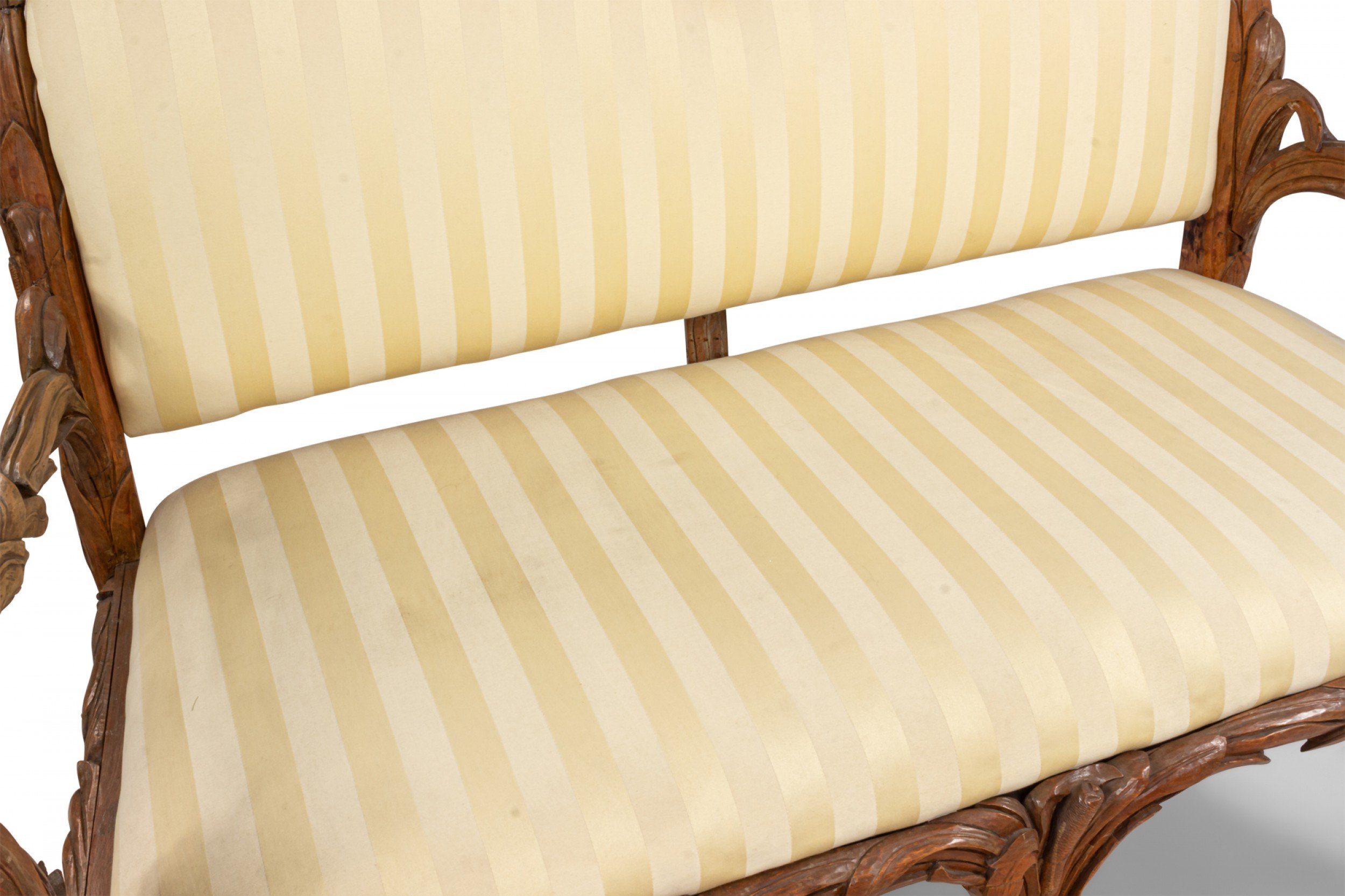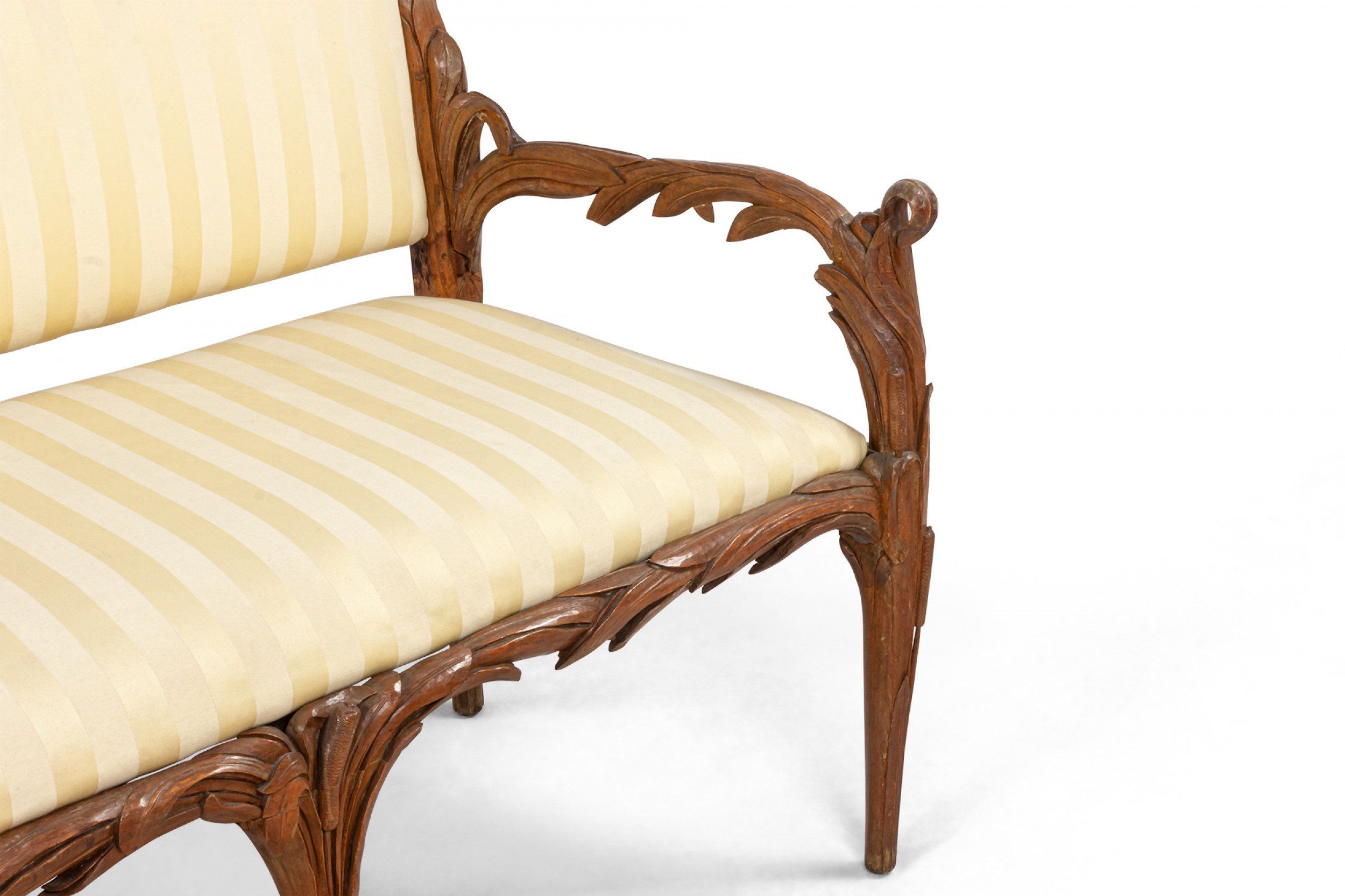 Rustic (Art Nouveau) Black Forest (19th Cen) walnut loveseat with floral carved frame and upholstered seat and back.