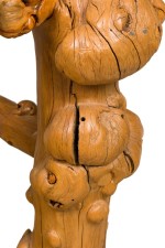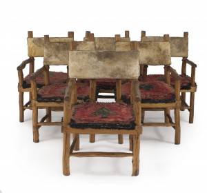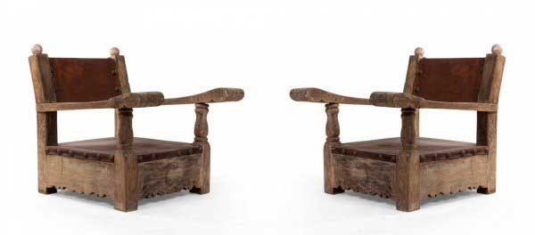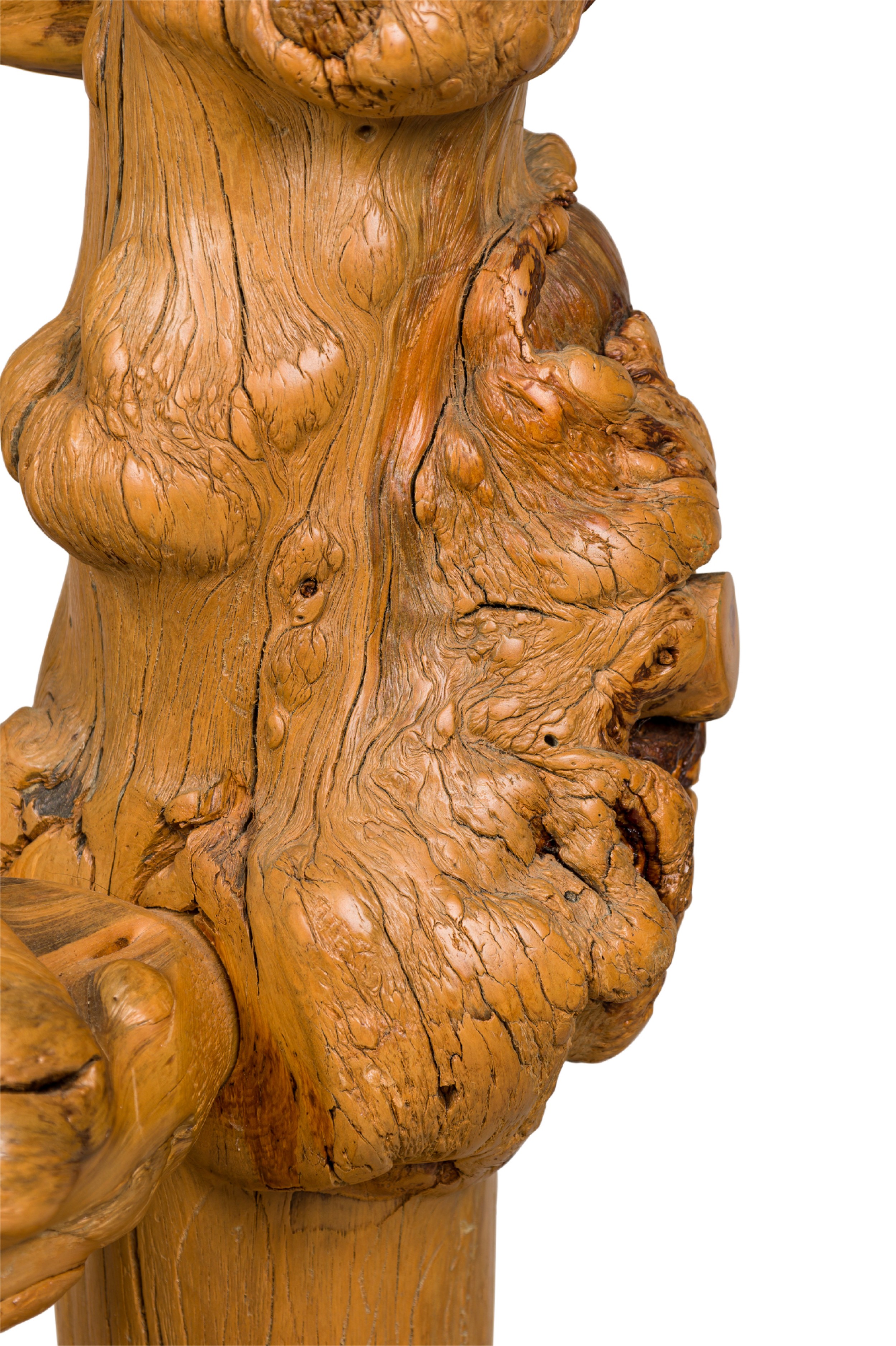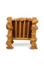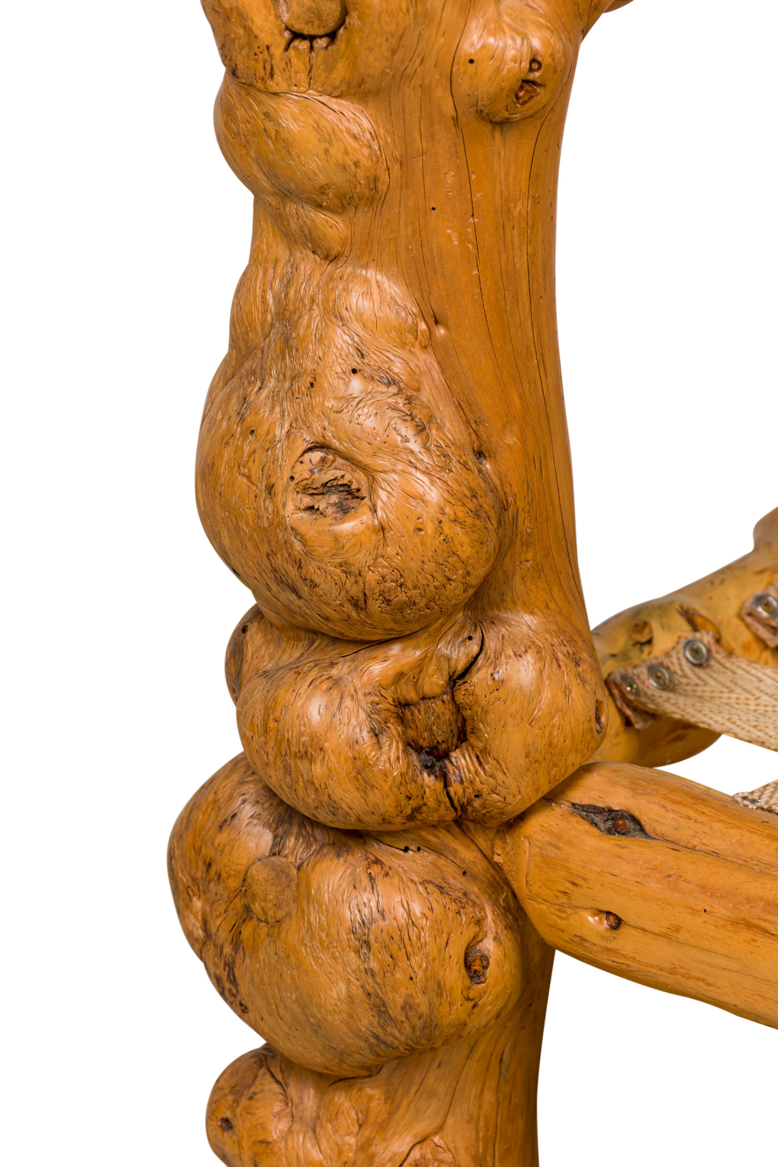 Rustic Blond Root Wood and Embossed Leather Throne Armchair