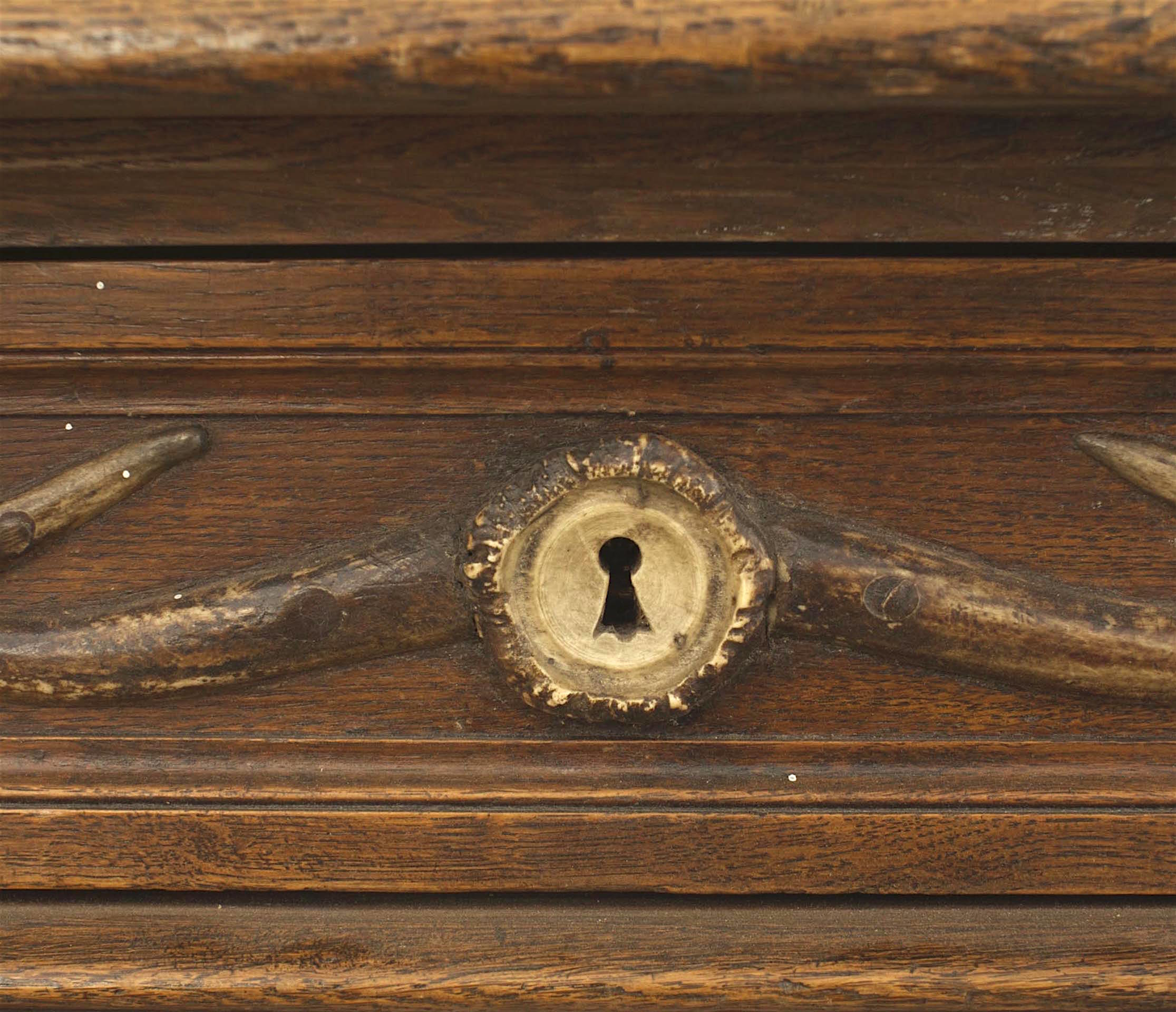 Style: Rustic Materials & Techniques: Oak, leather, carved Category: Tables, Office/Library, Rustic