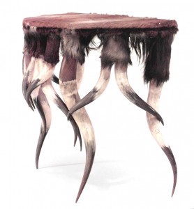 Rustic Continental (19th Century) horn design shaped console table with animal skin veneer (Related item: 053866)