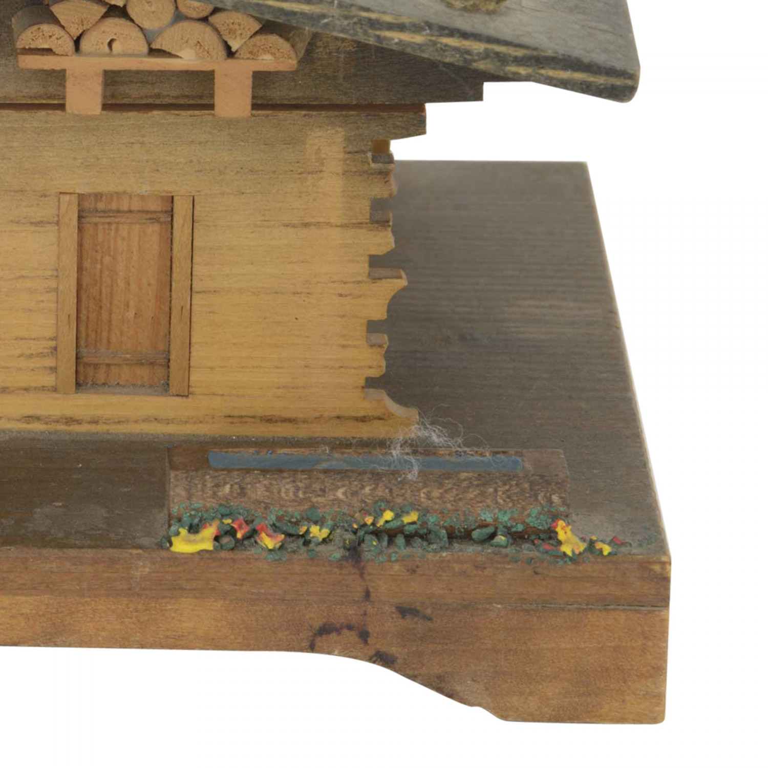 Rustic Continental (19/20th Century) house-shaped wood music box on a base