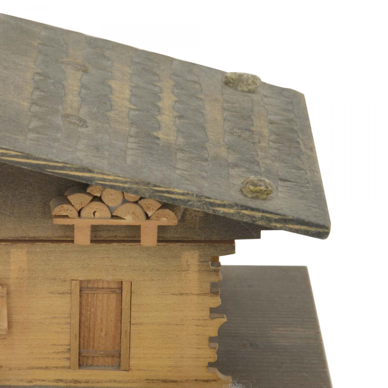 Rustic Continental (19/20th Century) house-shaped wood music box on a base.