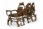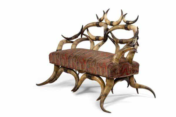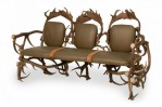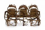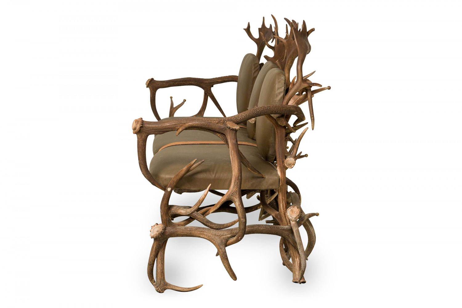 Rustic Continental Style Green Leather and Faux Antler Three-Seat Settee