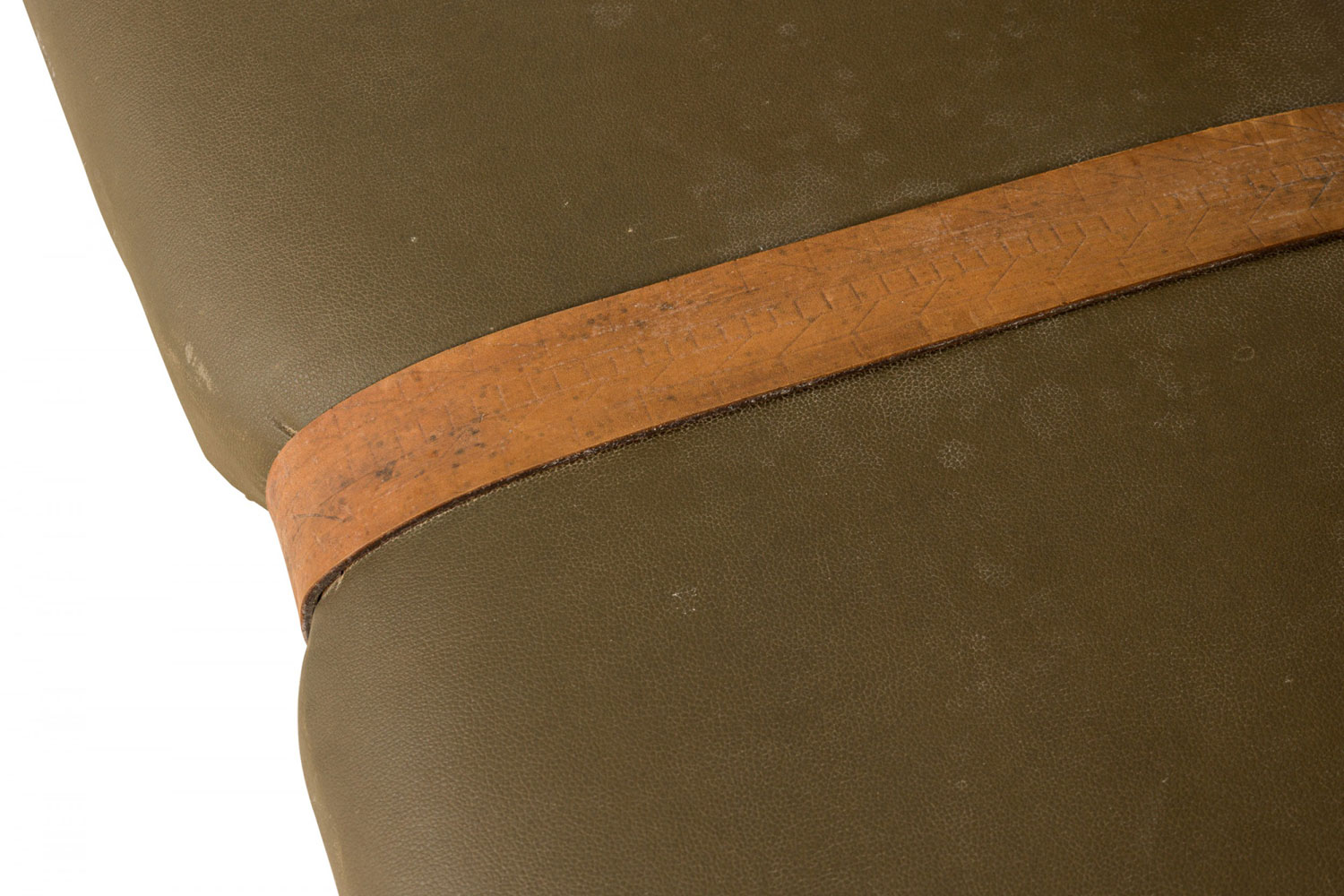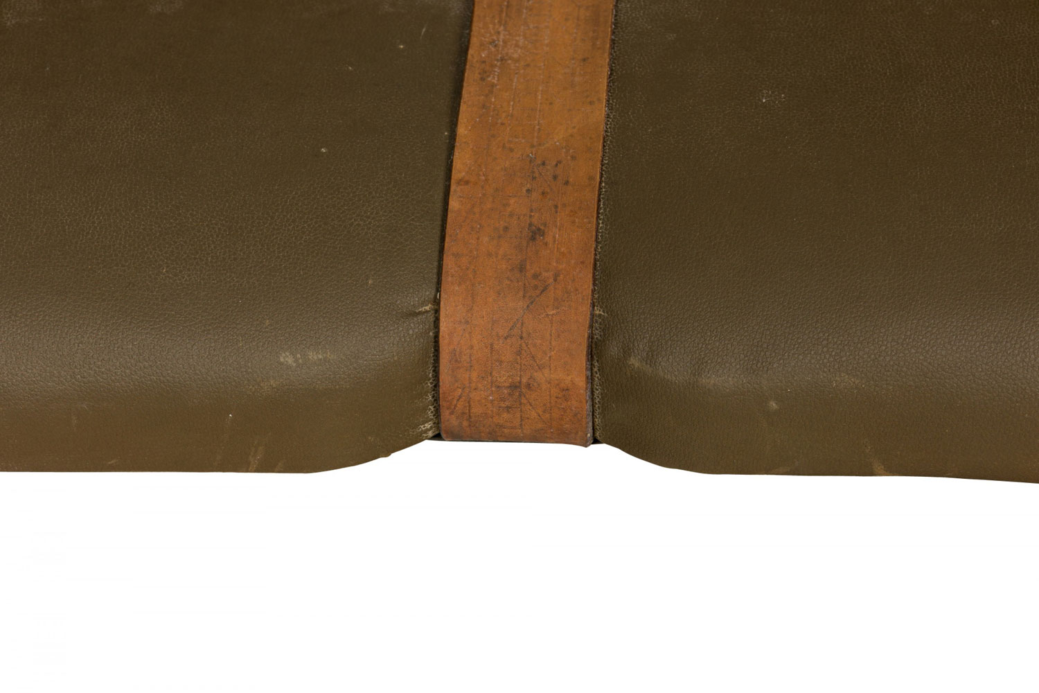Style: Rustic Materials & Techniques: Brass, leather, metal, resin, upholstered Category: Seating, Rustic Good; Wear consistent with age and use