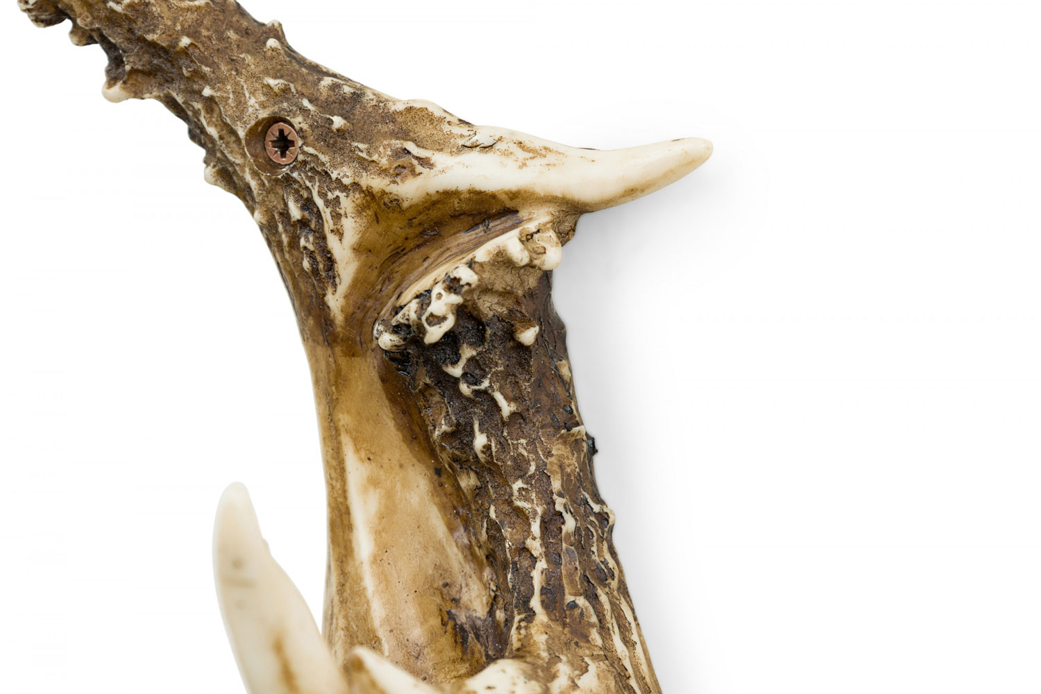 Rustic decorative wall plaque / hatrack comprised of two joined faux deer antlers.