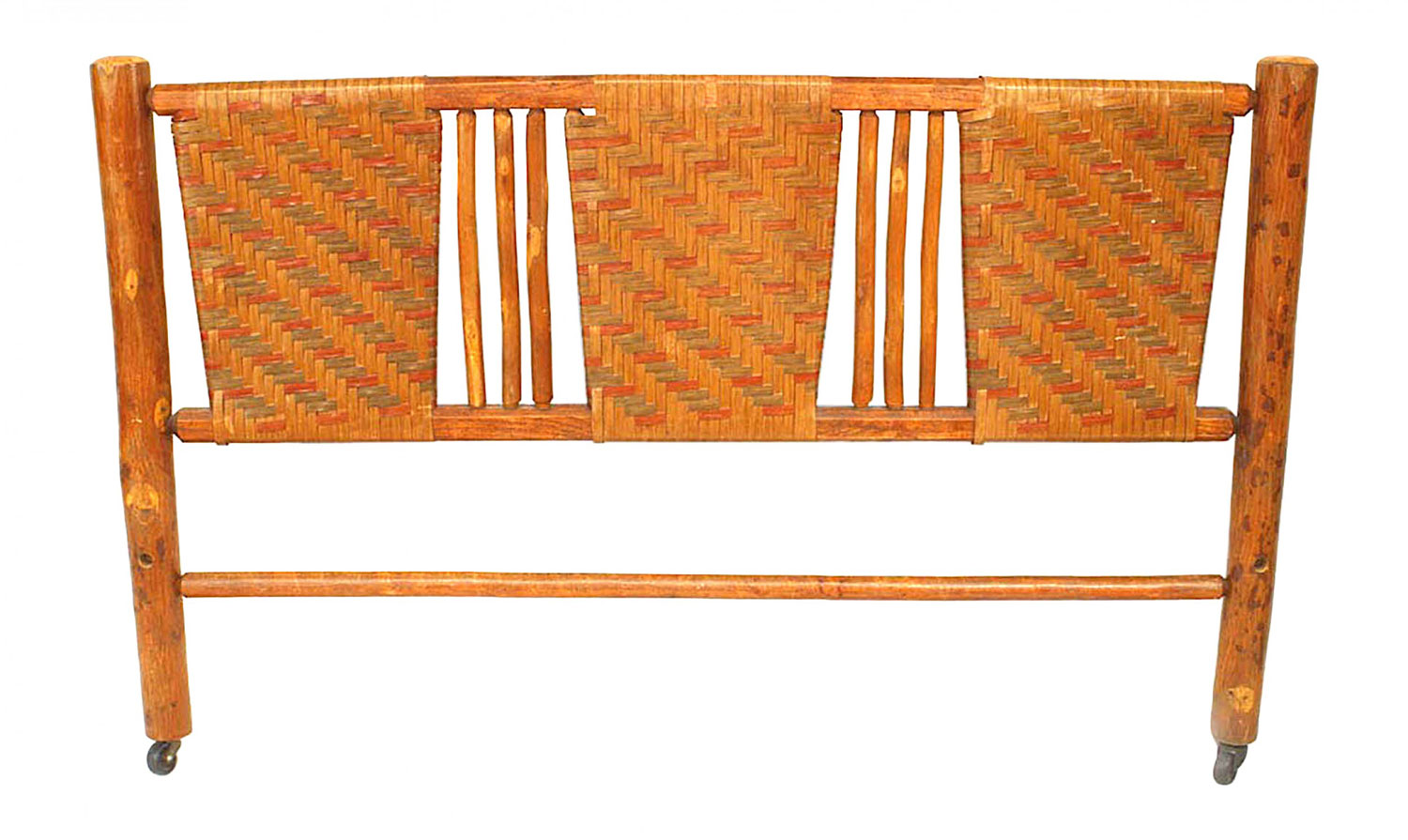 American Rustic Old Hickory full size headboard only with 3 woven panels (Columbus Hickory Furniture. Co., used for Wig Wam motels).