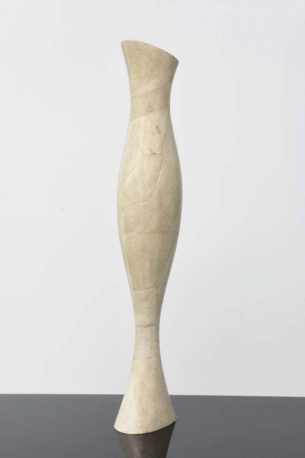 Mid-Century Continental Modern large sculptural vase finished in beige shagreen. (R&Y AUGOUSTI).
