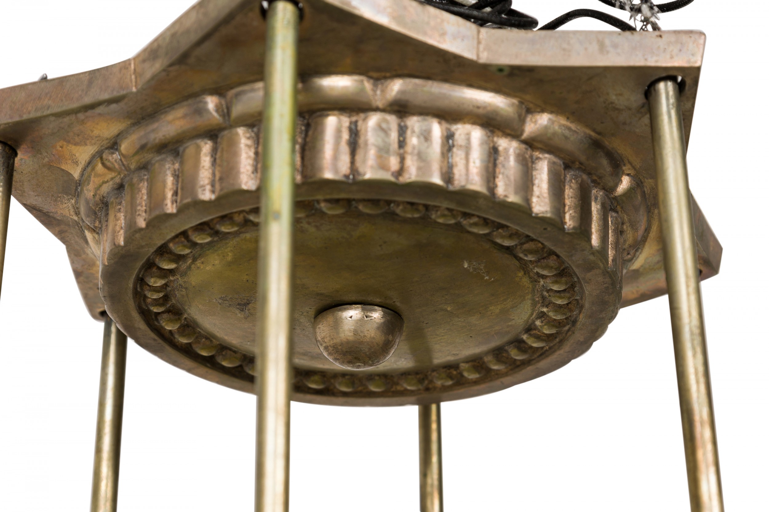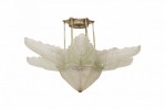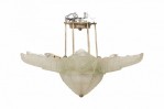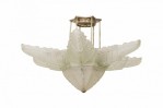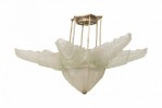 Style: Art Deco Materials & Techniques: Glass, metal Category: Lighting Condition: Wired but electrical condition unknown, restoration on two leaf ends. Good; Minor losses