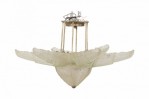 Sabino Art Deco French Frosted Glass and Metal Flower Form Chandelier