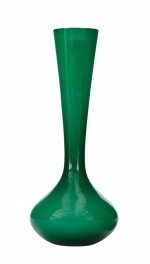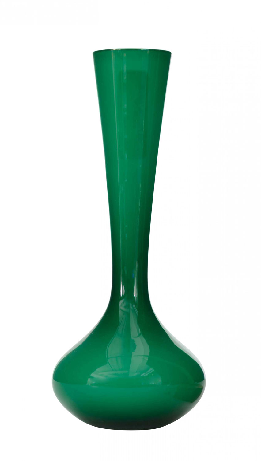 Scandinavian Mid-Century wide-bodied base green and white case glass vase with a long tapered neck
