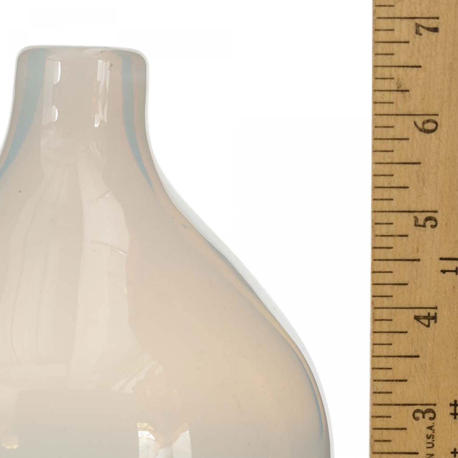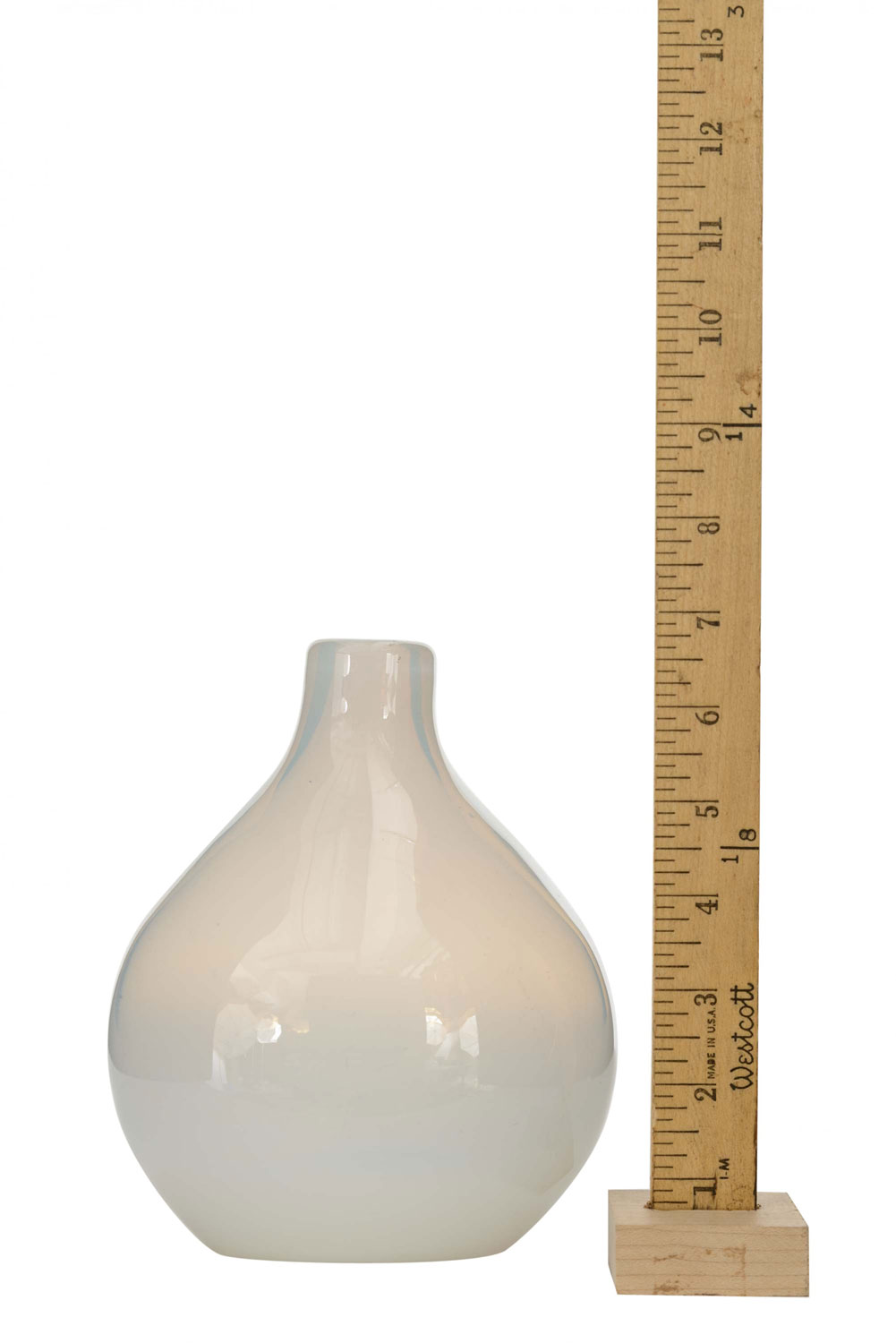 Scandinavian Mid-Century bulbous-shaped white tinted case glass bud vase with a short neck.
