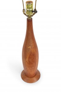 Scandinavian Post-War Design teak table lamp in the form a "bowling pin" on a round base..
