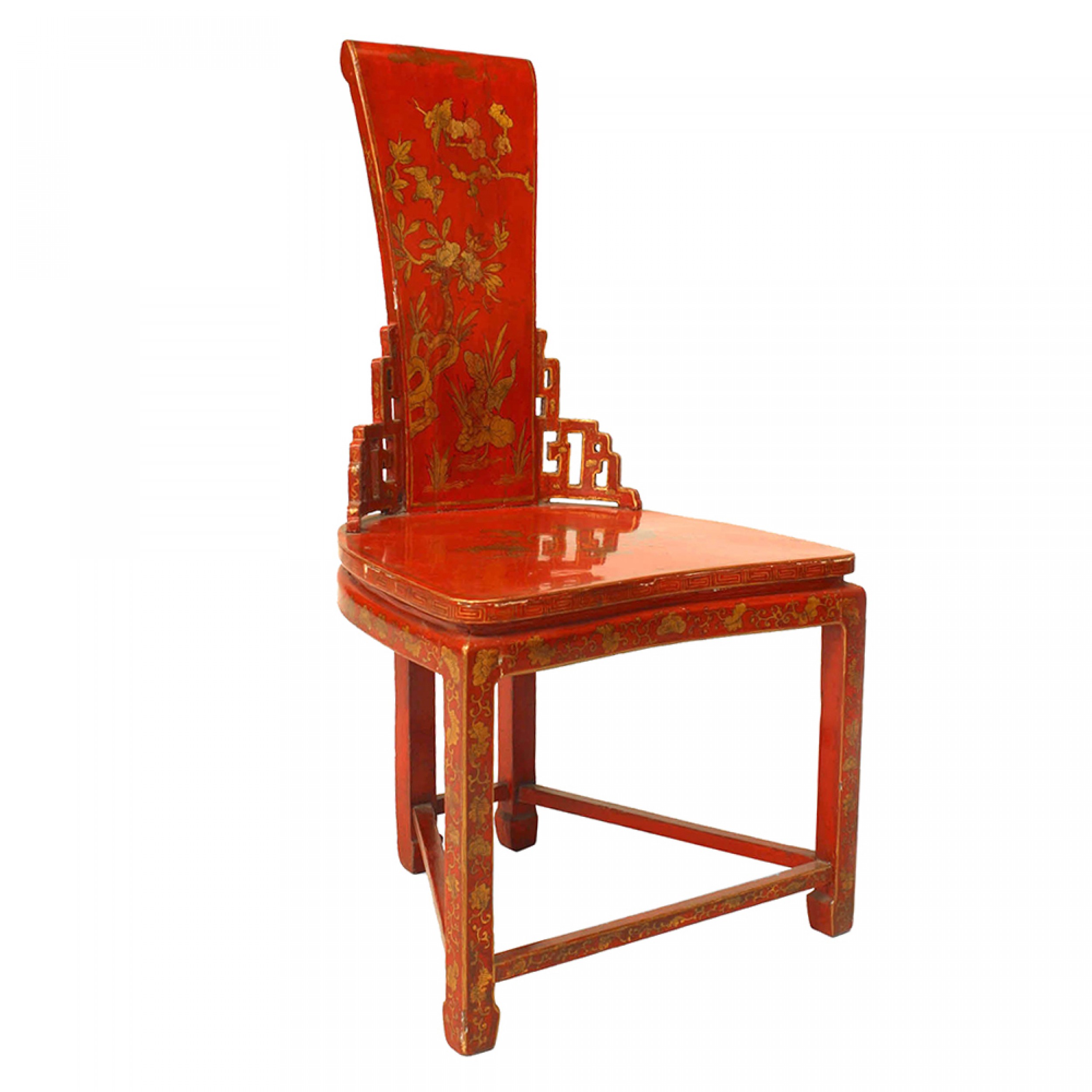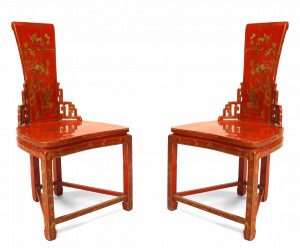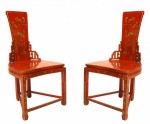 Pair of Asian Chinese (19th Cent) Red & Gilt Side Chairs