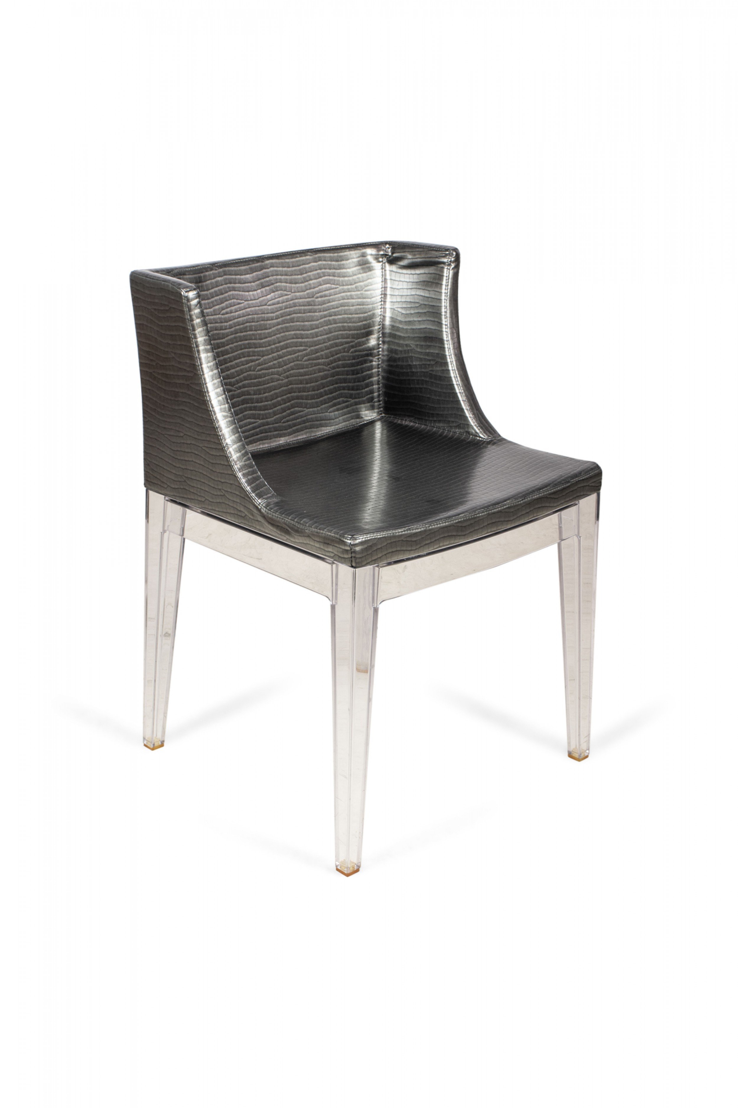 SET of 10 Contemporary Kartell Mademoiselle dining chairs, with a faux crocodile pattern polyurethane fabric covered seat, and polycarbonate (Lucite) legs. (Designer: PHILIPPE STARCK) (PRICED AS SET) (PRICED AS SET).