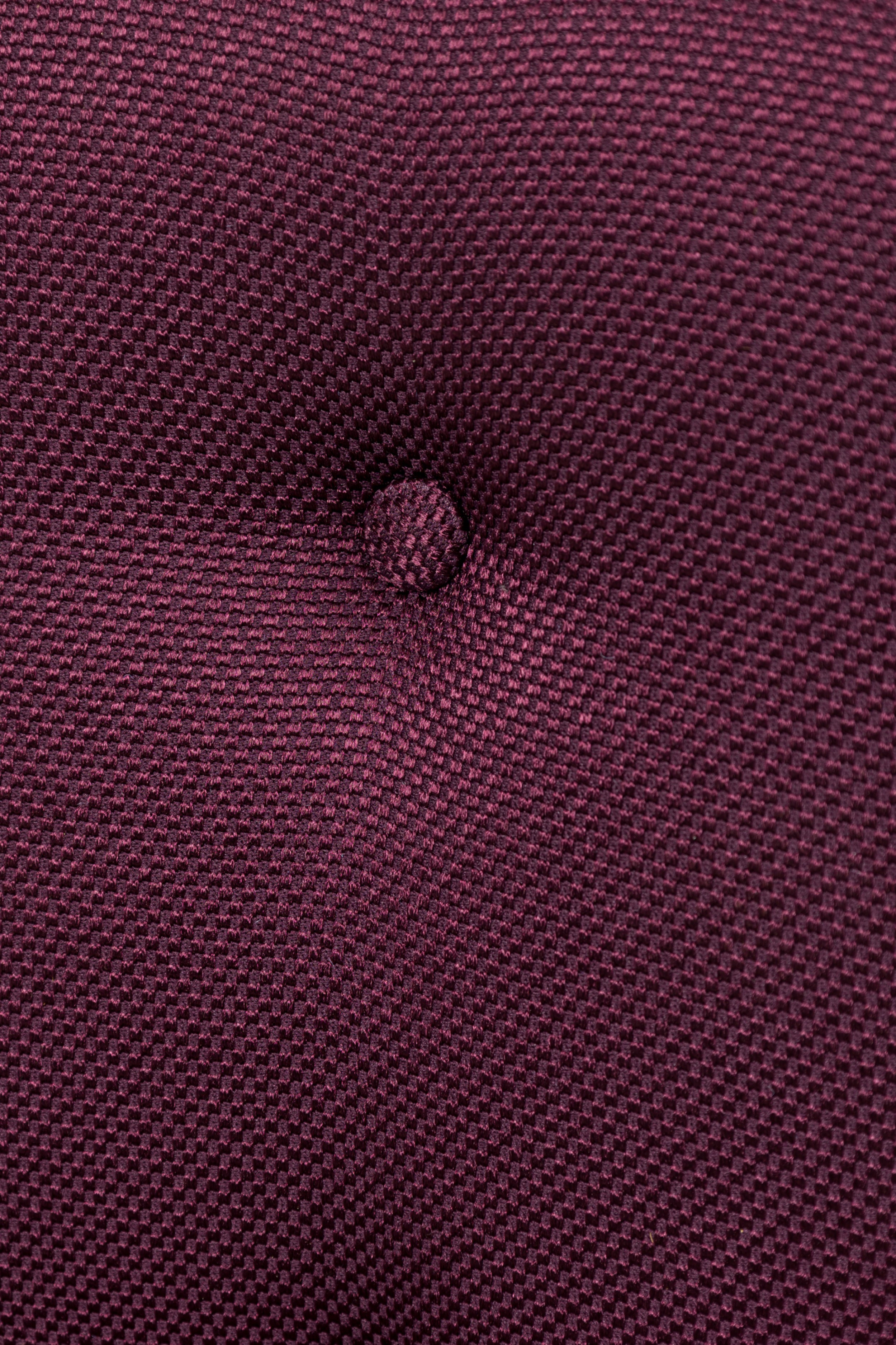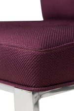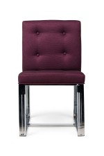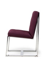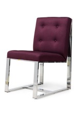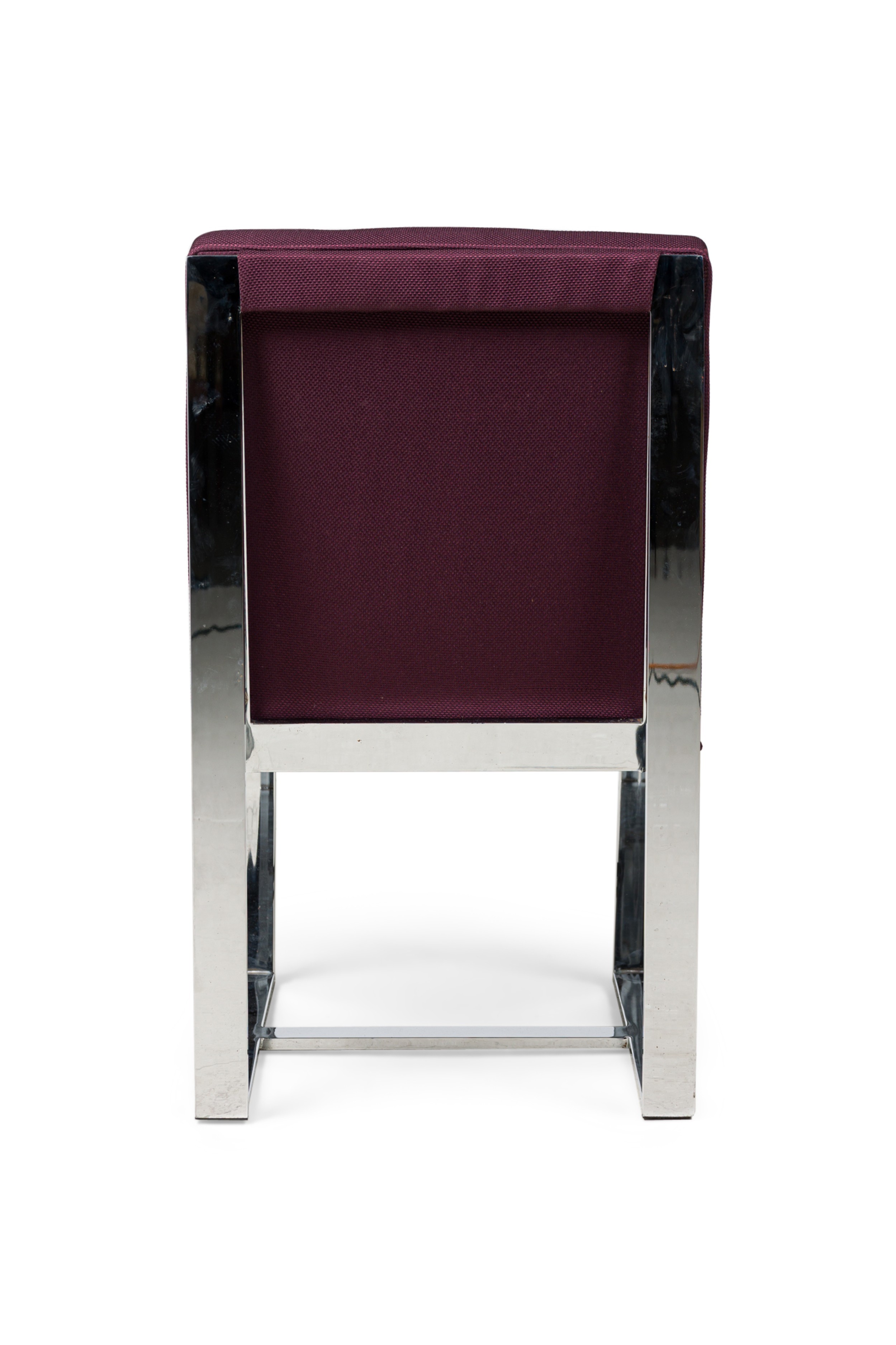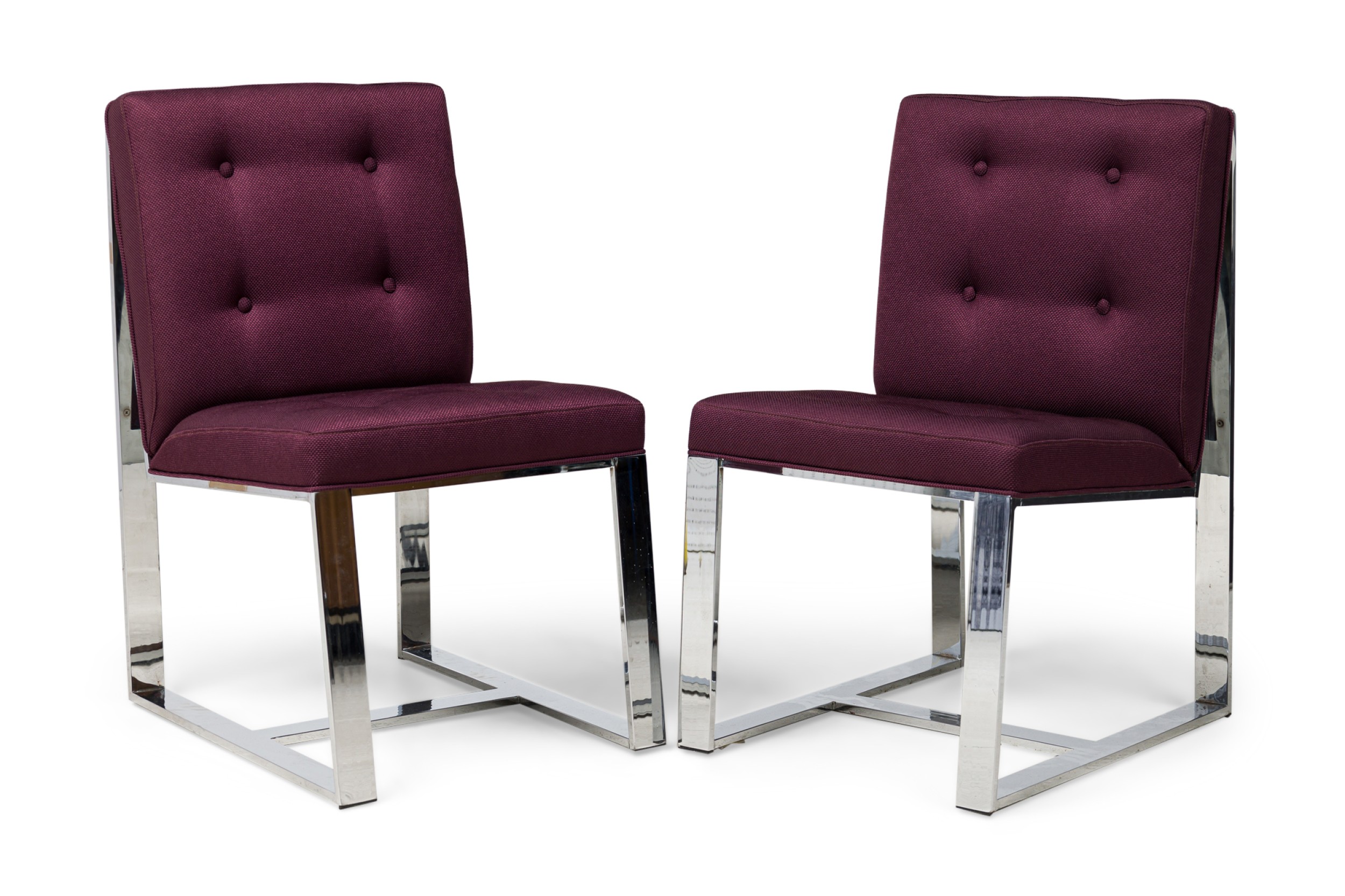 SET of 10 American Mid-Century dining / side chairs with flat bar polished stainless steel frames, upholstered in a textured purple fabric with button tufted backs. (MILO BAUGHMAN) (PRICED AS SET)
