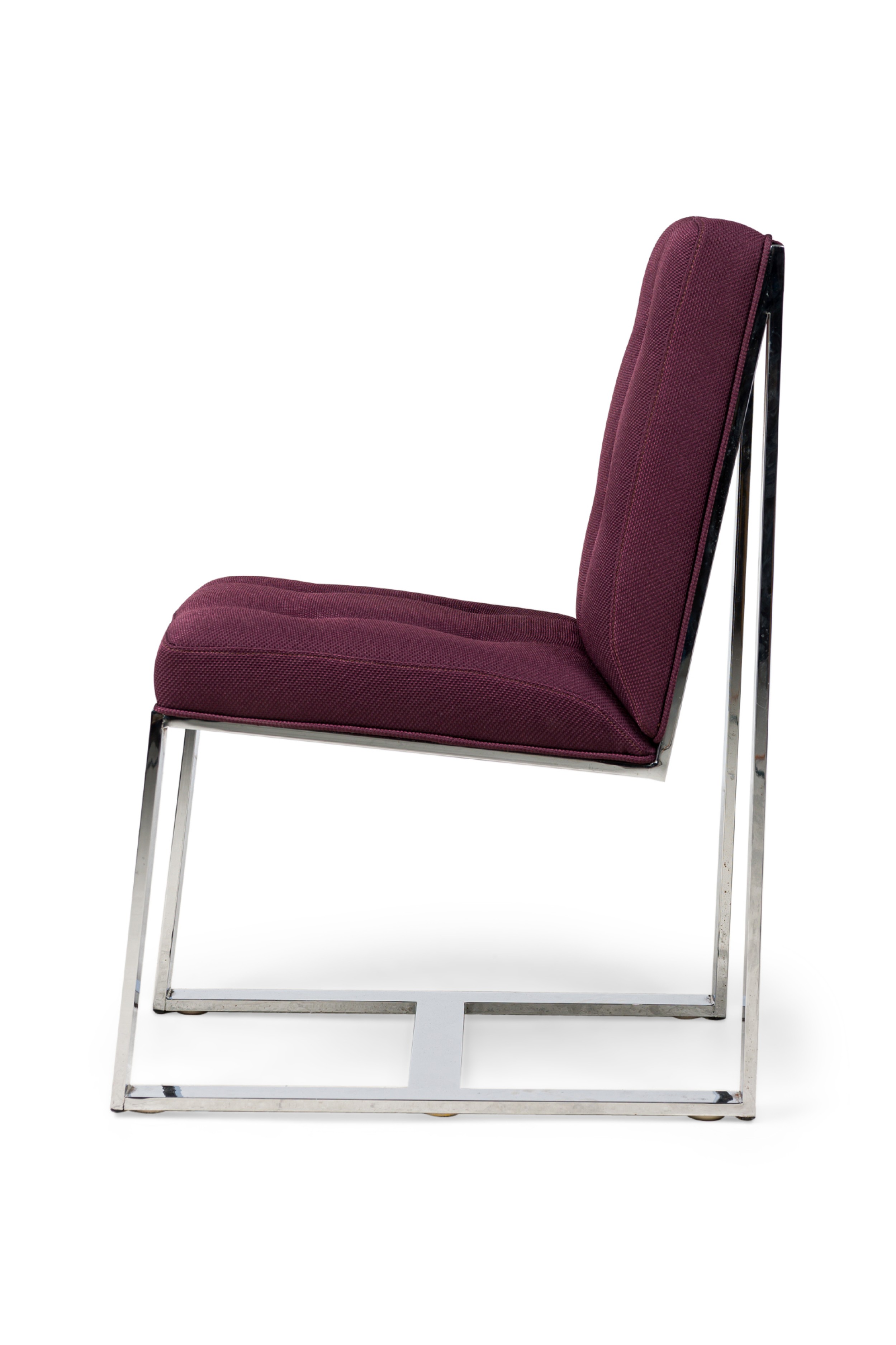 Set of 10 Milo Baughman American Mid-Century Polished Steel and Purple Upholstered Side Chairs