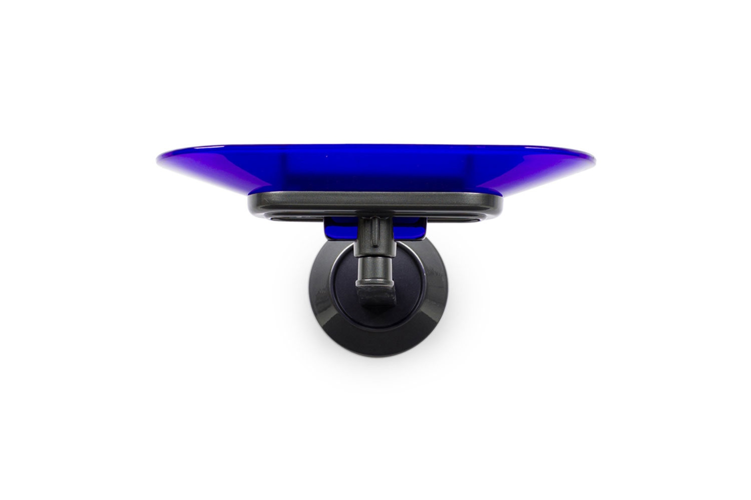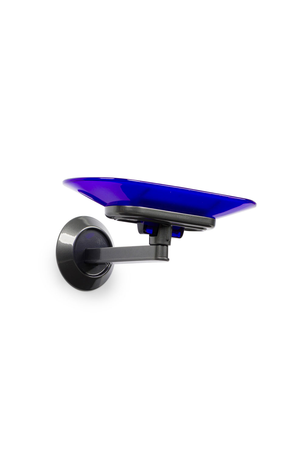 3 Italian Mid-Century "Jill" Dark Metal Frame Bracket Wall Sconces holding a rectangular shaped blue glass shade (ARTELUCE)(PRICED EACH)