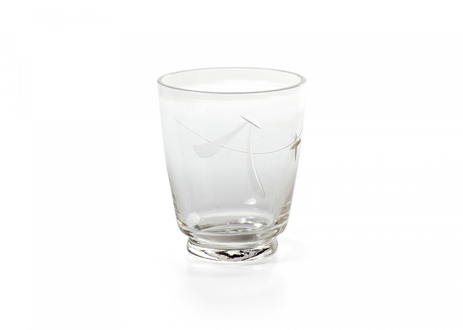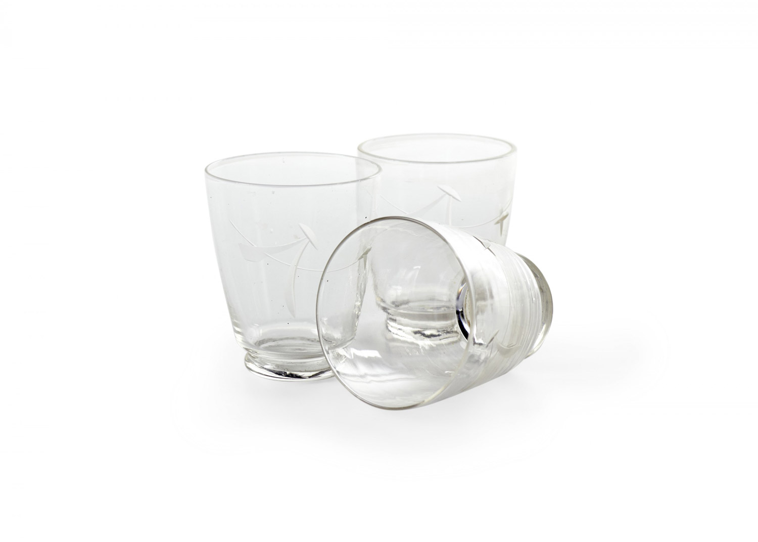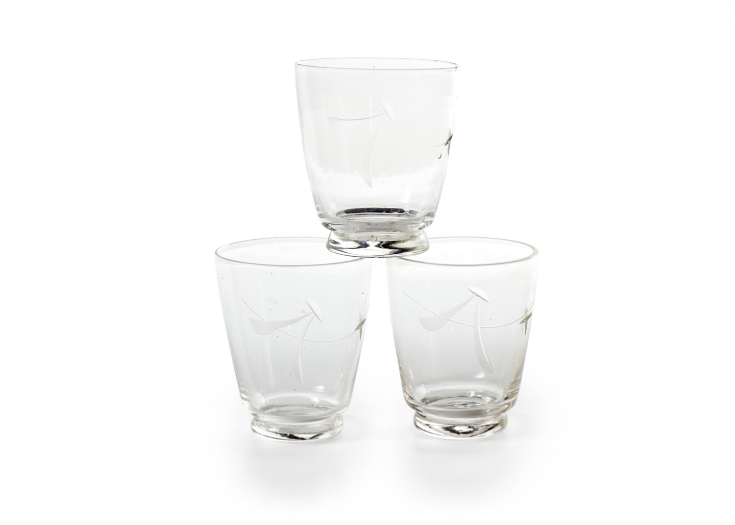 Set of 3 French Mid-Century (1940s) crystal shot glasses with stylized star and swag design. (PRICED AS SET)