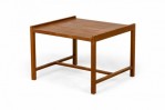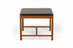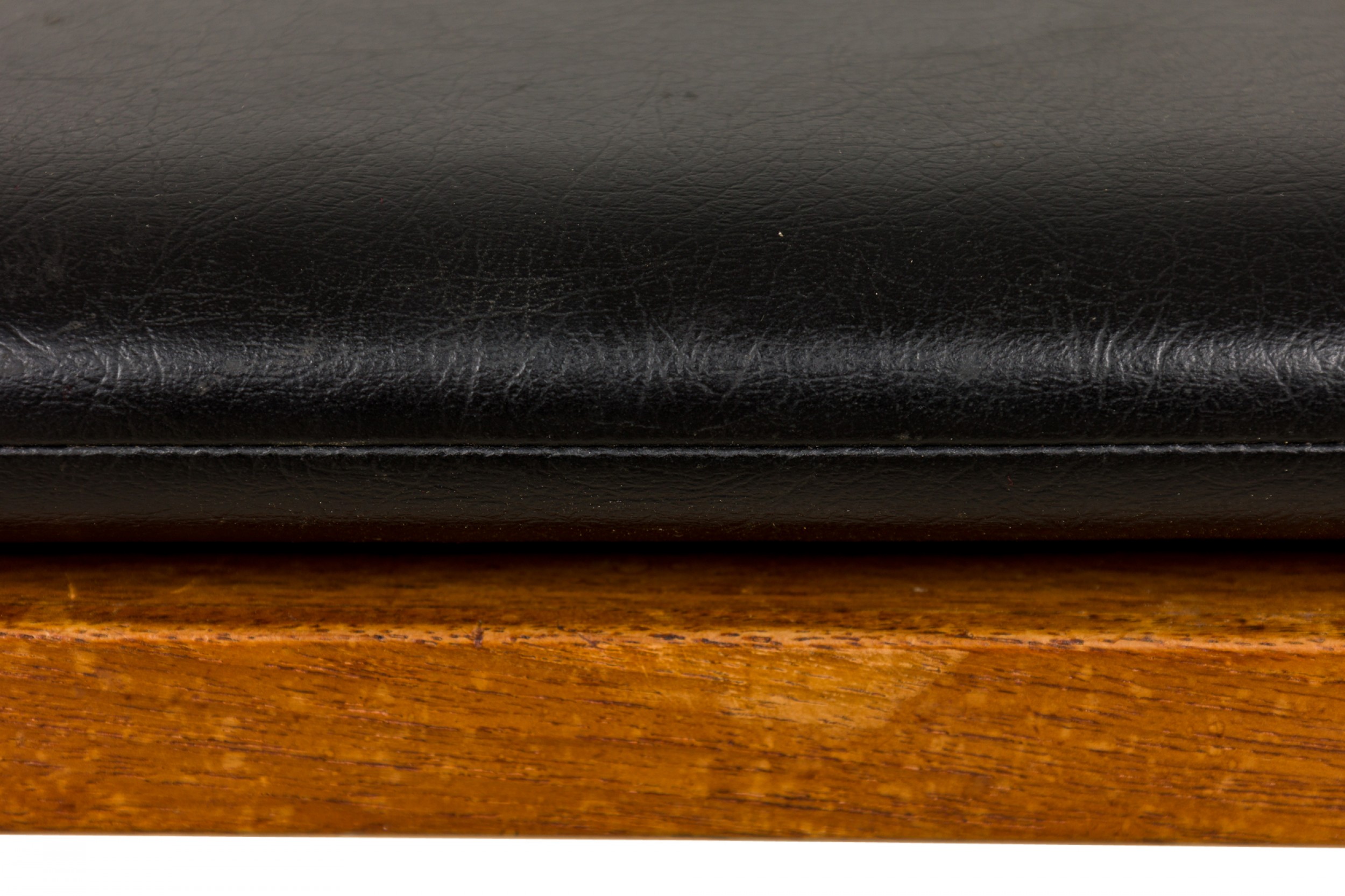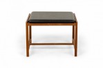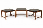 SET of 3 Norwegian Mid-Century low stools / side tables with rectangular walnut frames with stretcher bases, topped with black leather upholstered seats / tops. (INGMAR RELLING FOR BROTHERS BINDEIM)(PRICED AS SET)